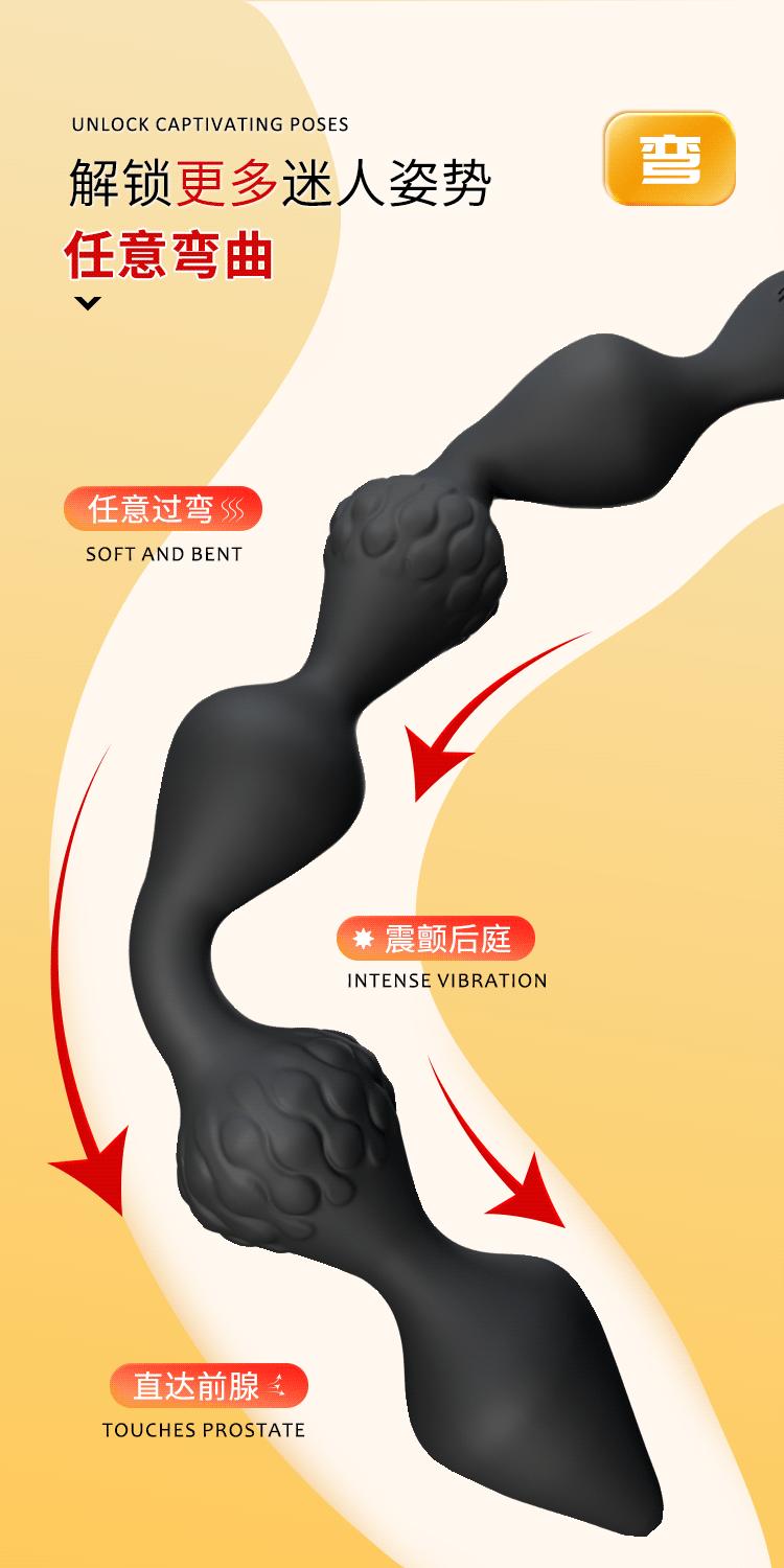 Tapón anal con cuentas para la espalda, anillo de tracción, vibrador doble, juguete anal de silicona líquida, productos sexuales para adultos, masturbador