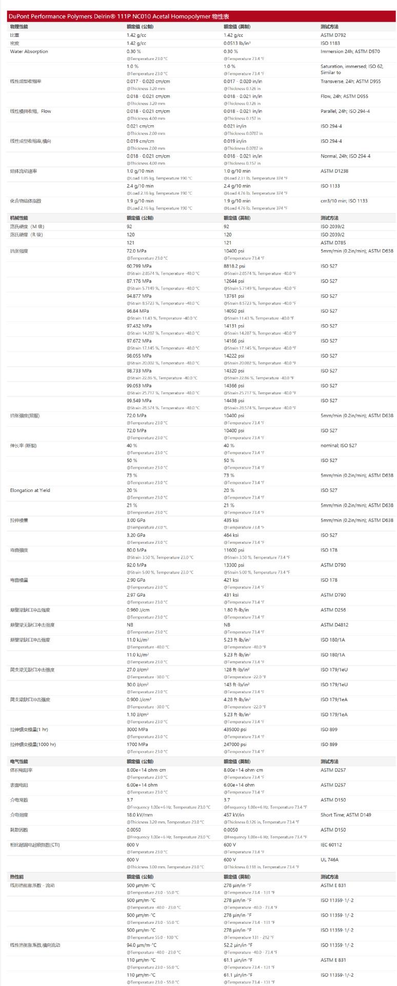 POM Estados Unidos DuPont 111p NC010/grado de inyección grado de endurecimiento piezas automotrices Electrónica