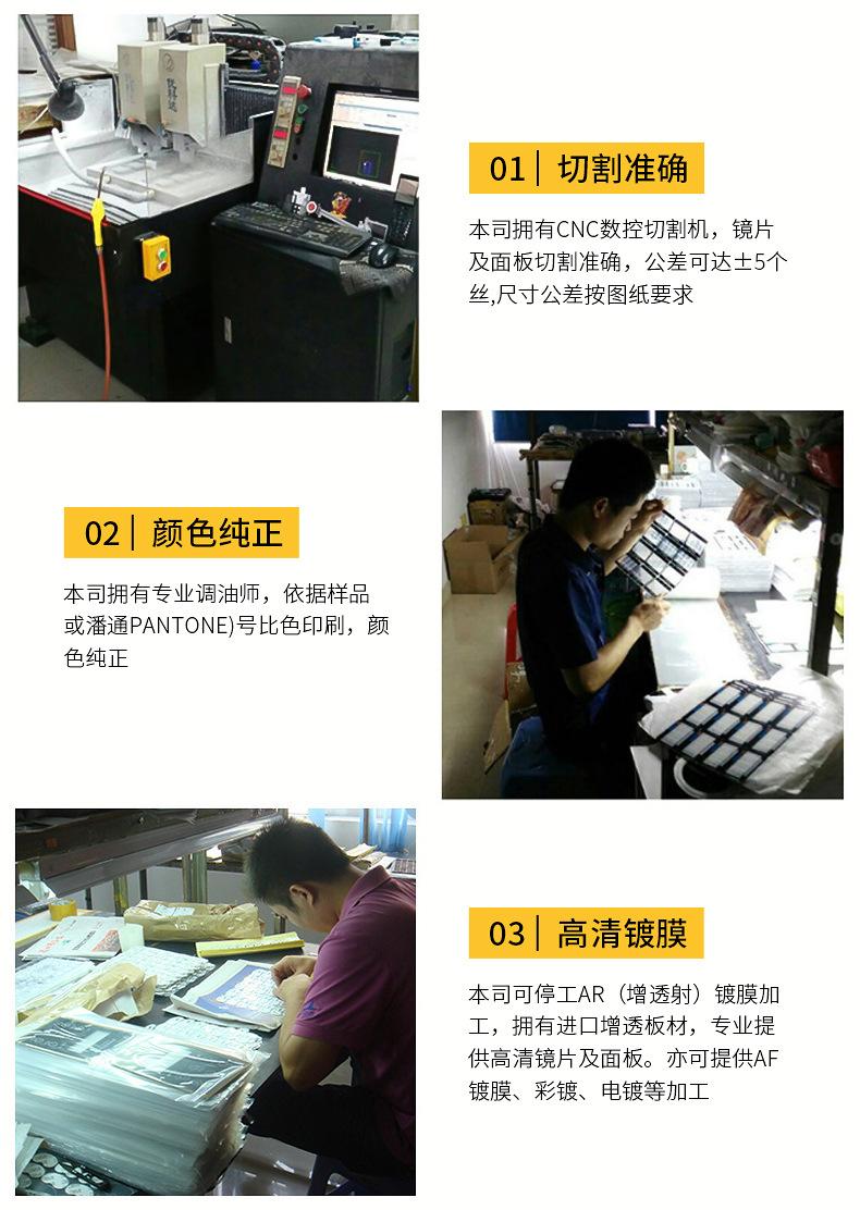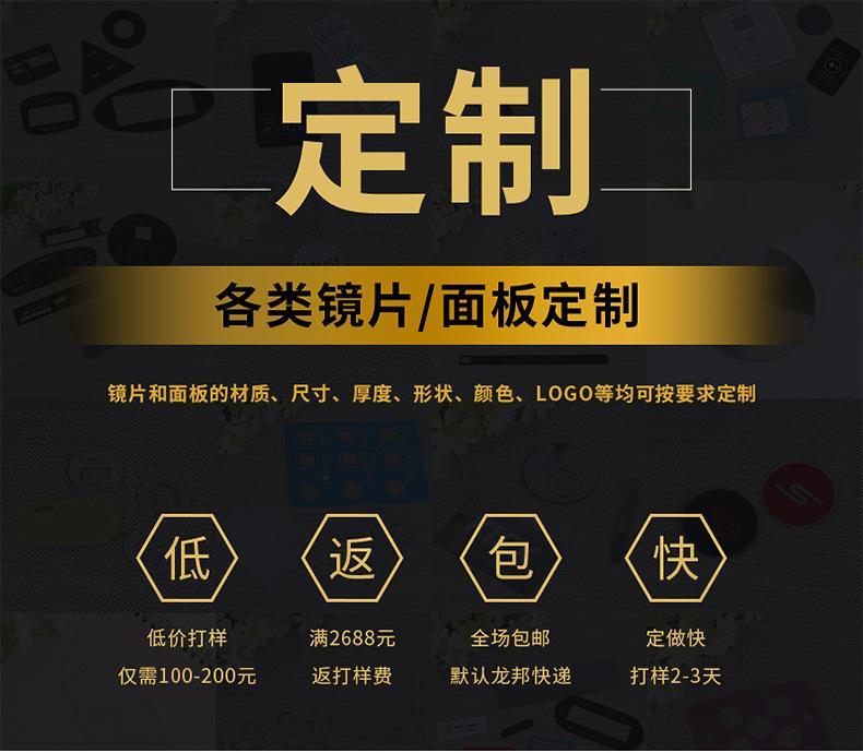 Nuestra empresa puede producir y personalizarAdecuado para lentes y paneles de teléfonos móviles, instrumentos y diversos productos electrónicos.El material, tamaño, grosor, forma, color, LOGO, etc. de las lentes y paneles se pueden personalizar según sea necesario.。