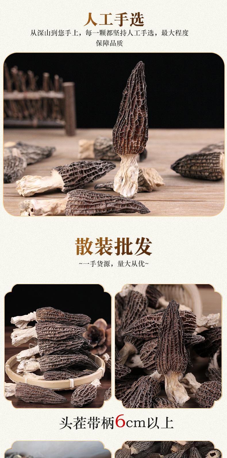Morchella productos secos Origen Yunnan primer lote de Morchella hongo seco a granel al por mayor con tallo cortado comestible Morchella productos secos