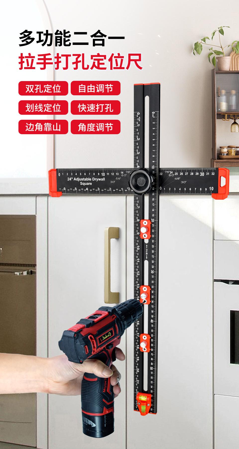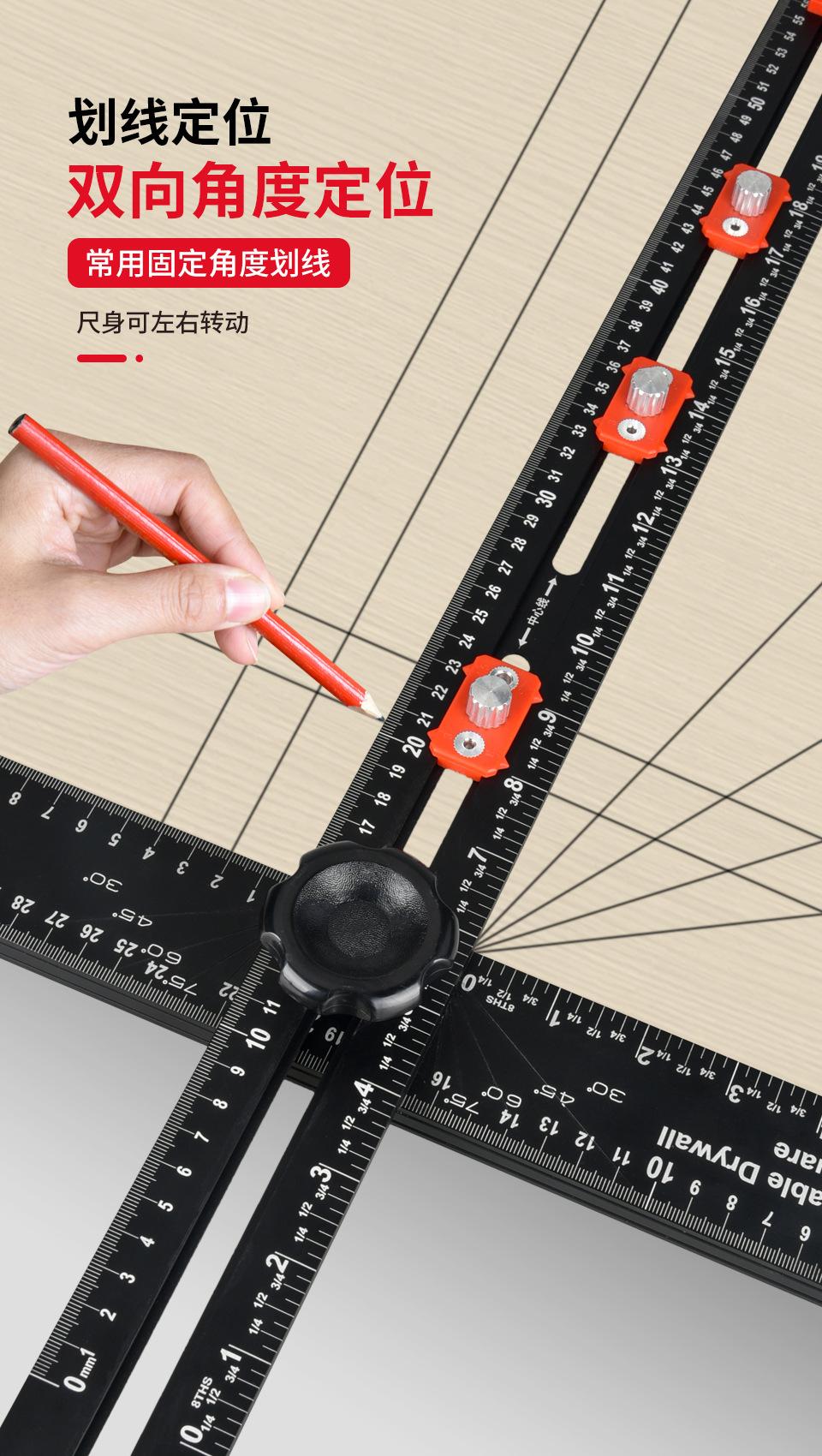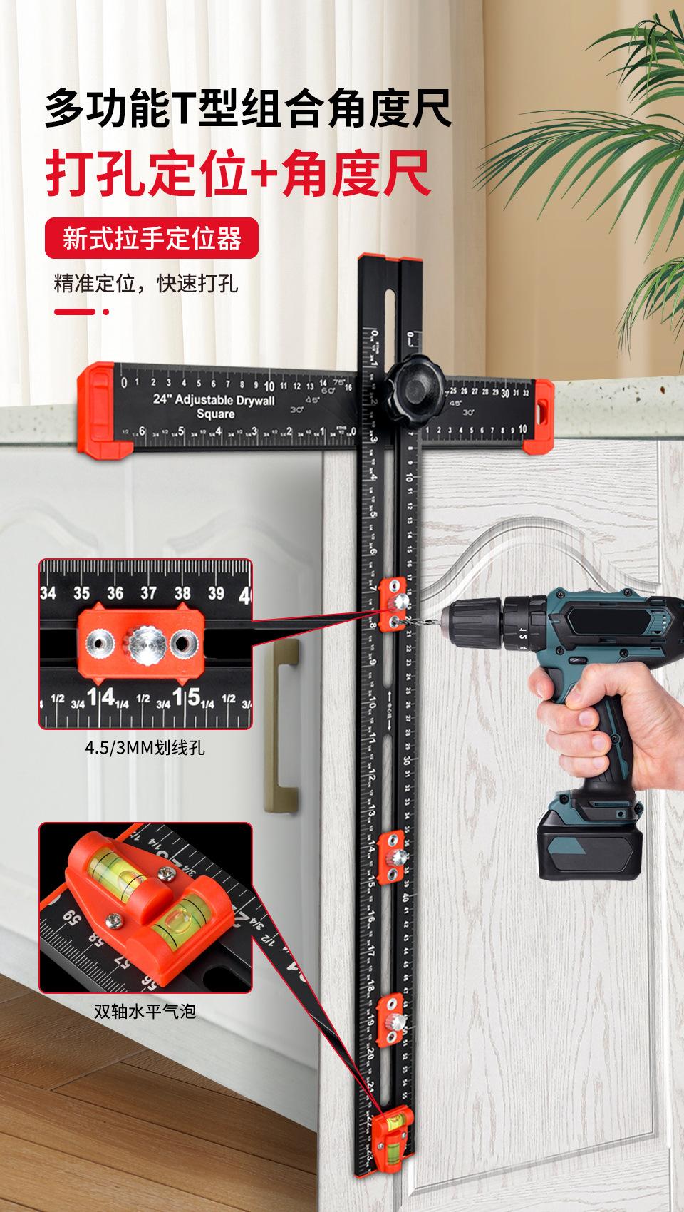 Regla en T multifuncional para carpintería Regla de posicionamiento de perforación dos en uno Regla de ángulo multifuncional Regla en T Regla de posicionamiento de perforación