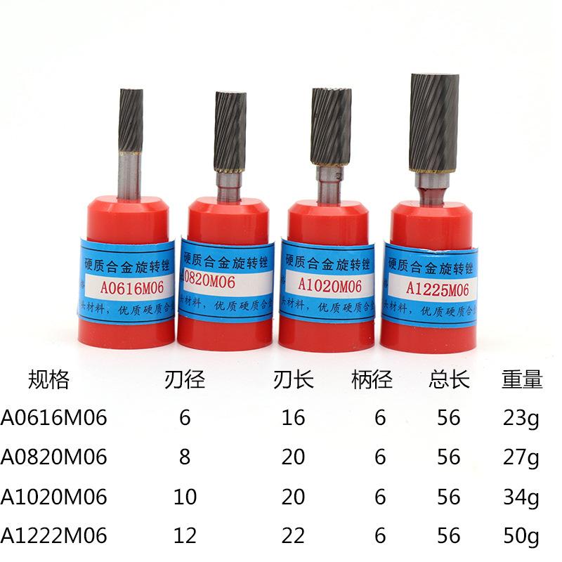 Cabezal de rectificado/fresa de acero de tungsteno con lima rotatoria de carburo, modelo E, fresa para carpintería, fresa de acero de tungsteno de 6 vástagos, fresa de grano único