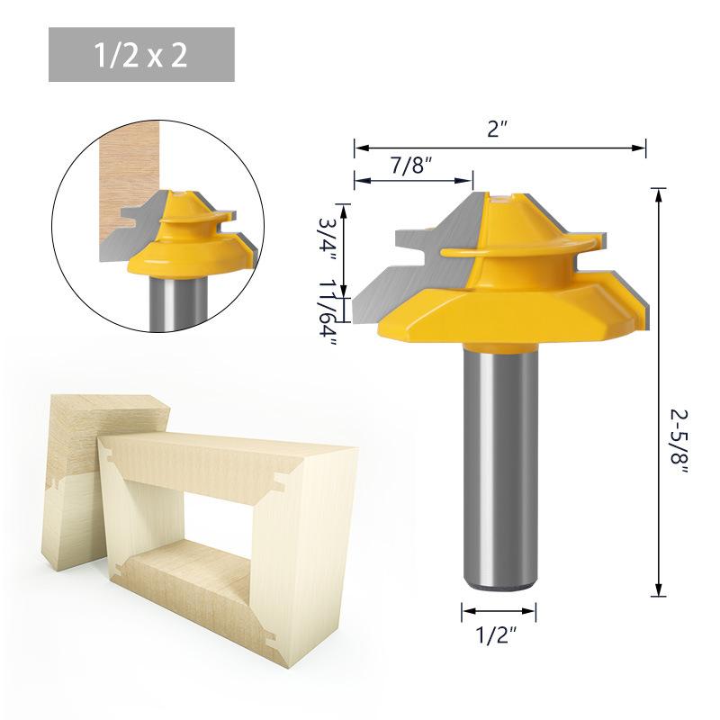 Fresa para carpintería con mango de 1/2, 45 grados, empalme de madera, cortador de línea, cortador de ángulo recto, máquina recortadora, cortador de aleación