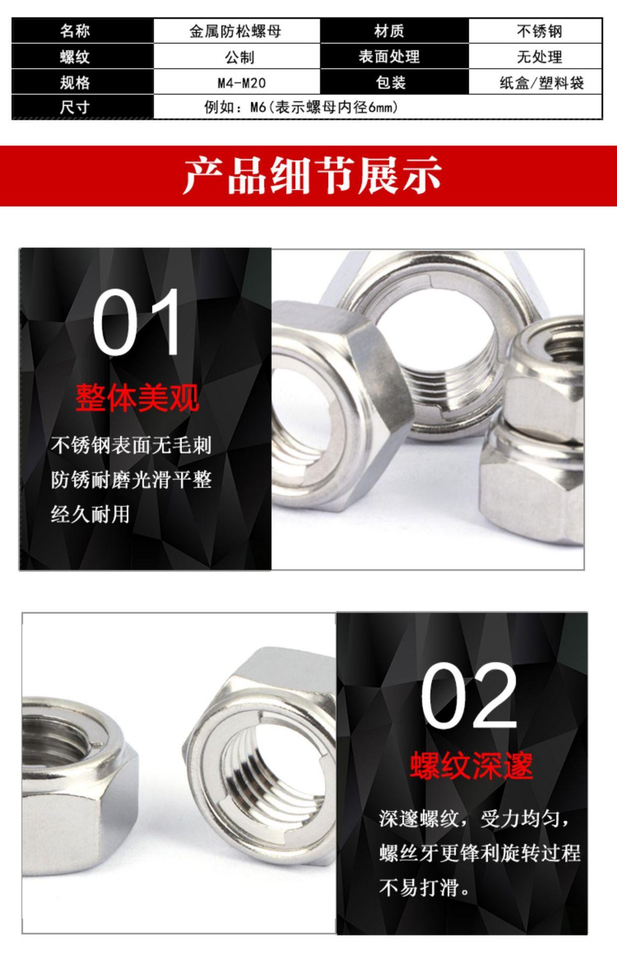 Acero inoxidable 304/201 tuerca hexagonal autoblocante antiaflojamiento totalmente metálica tuerca antiaflojamiento M3M4M5M6M8M20