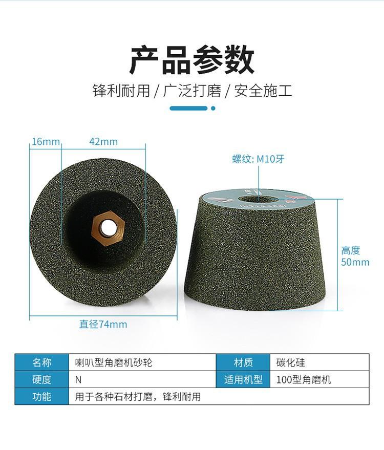 Muela de piedra de trompeta para pulido de granito, recorte de carburo de silicio verde, cabezal de pulido de amoladora angular, disco de pulido cerámico