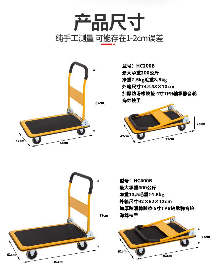 Carretilla de plataforma Carretilla de carga silenciosa Carretilla de carga de almacén Carretilla plegable Carretilla de mano de cuatro ruedas de placa de acero
