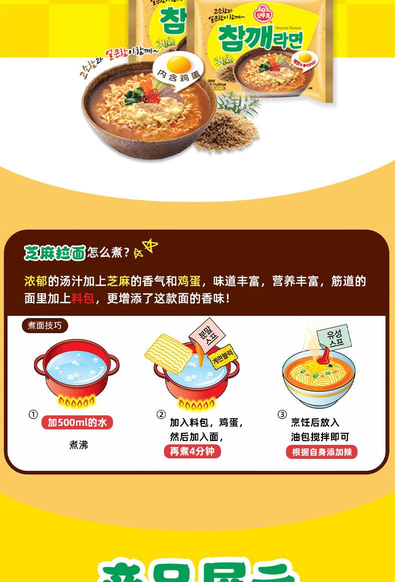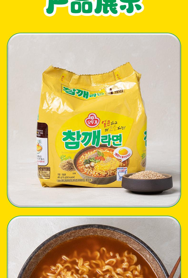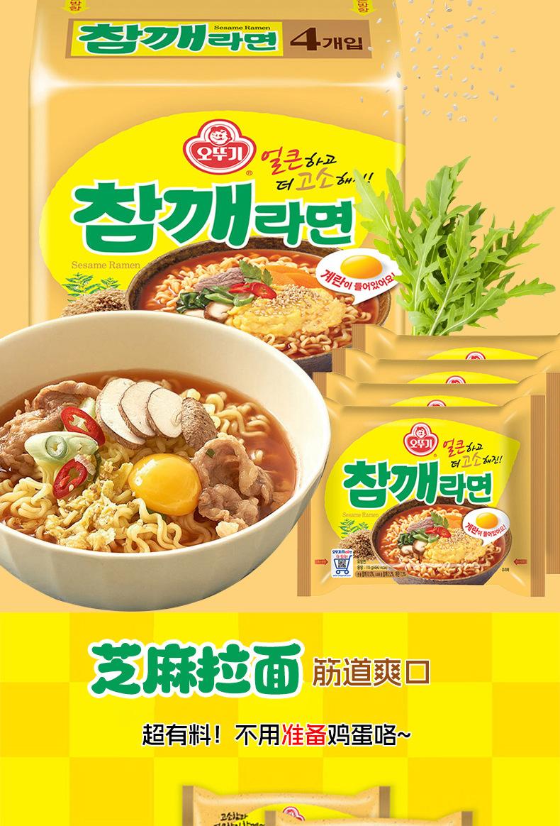 Fideos instantáneos de ramen con huevo y sésamo importados de Corea del Sur, 460 g, refrigerio nocturno, comida instantánea, auténticos fideos instantáneos coreanos.
