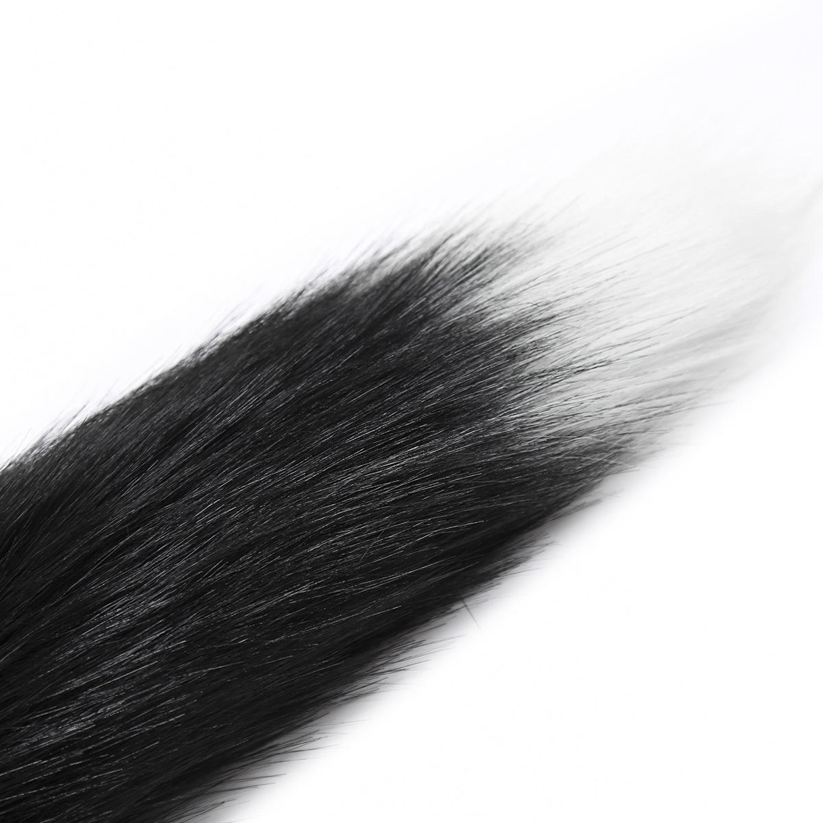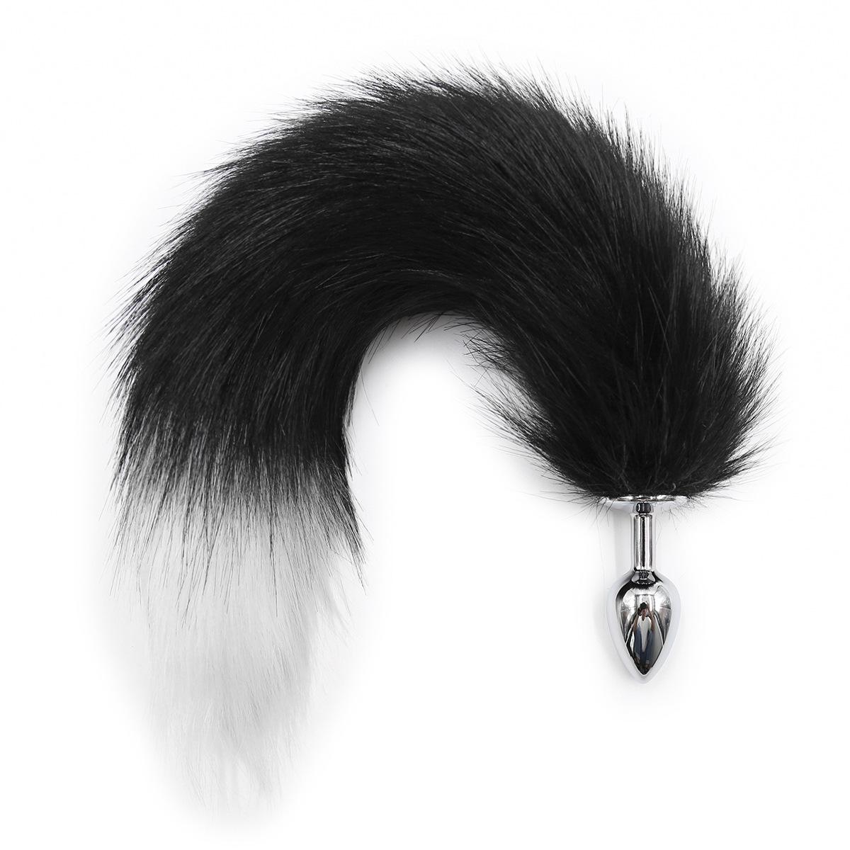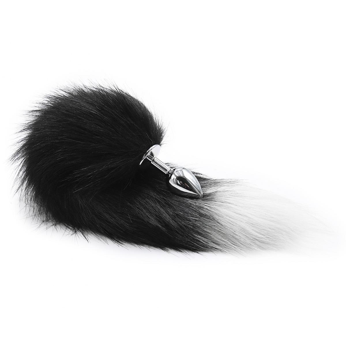 | Plug anal pequeño de piel sintética negra con punta blanca y cola pequeña