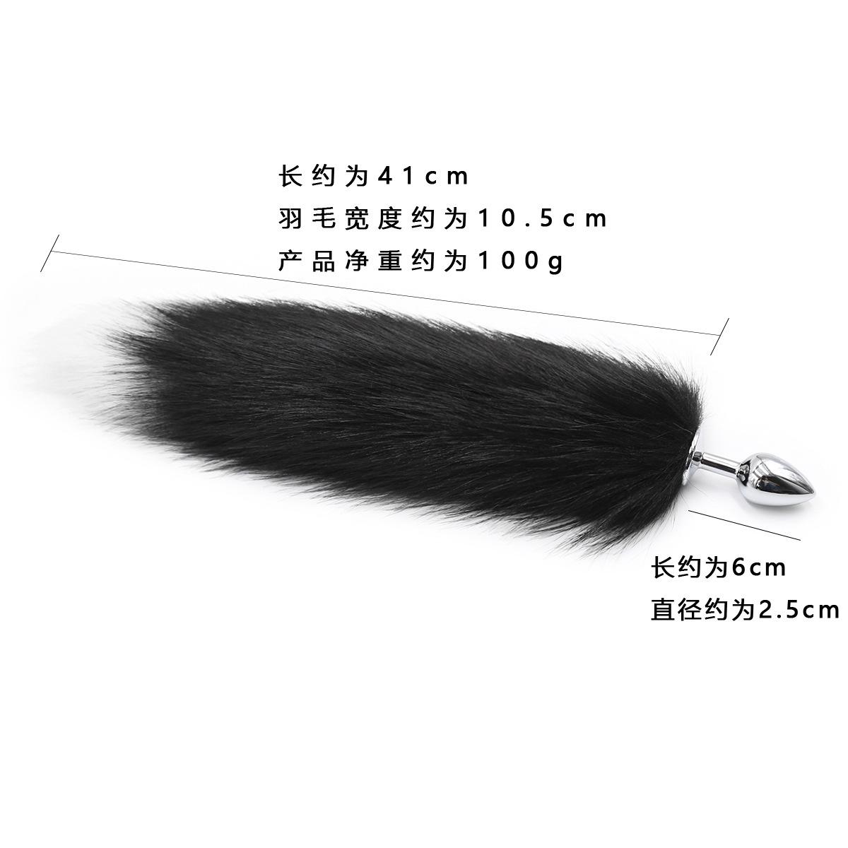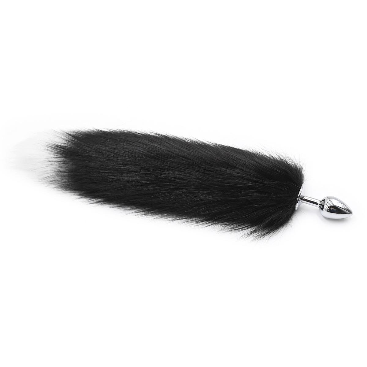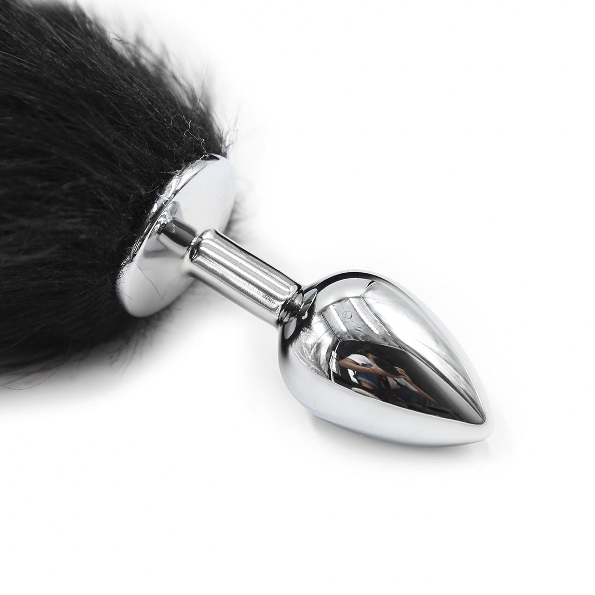 | Plug anal pequeño de piel sintética negra con punta blanca y cola pequeña