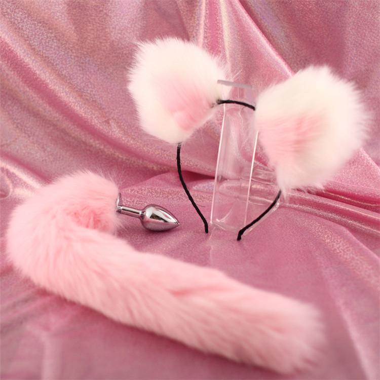 Juguetes sexuales, accesorios para la trastienda, banda para el pelo con orejas, tapón anal de metal, tapón de crisantemo de cola de zorro, juguete para parejas adultas