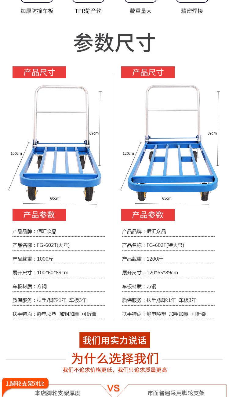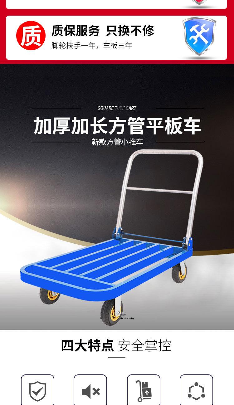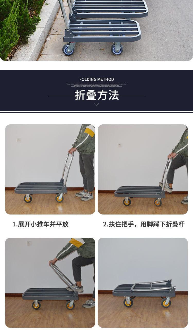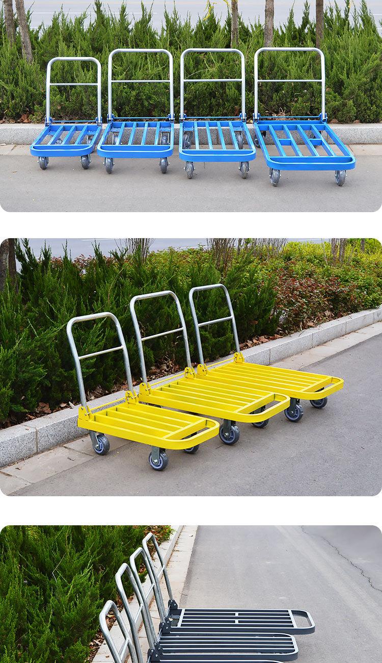 Fabricante mayorista de placa de hierro 6090, logística de recolección de almacén, carro de carga plano, portaherramientas plegable de cuatro ruedas