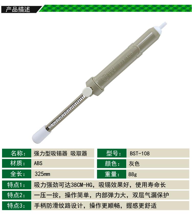 Mejor Succión Manual de Estaño Extra Grande Succión de Estaño Varilla Ayuda Electrónica para Soldar Lápiz de Succión Gris Punto de Remoción de Estaño 108