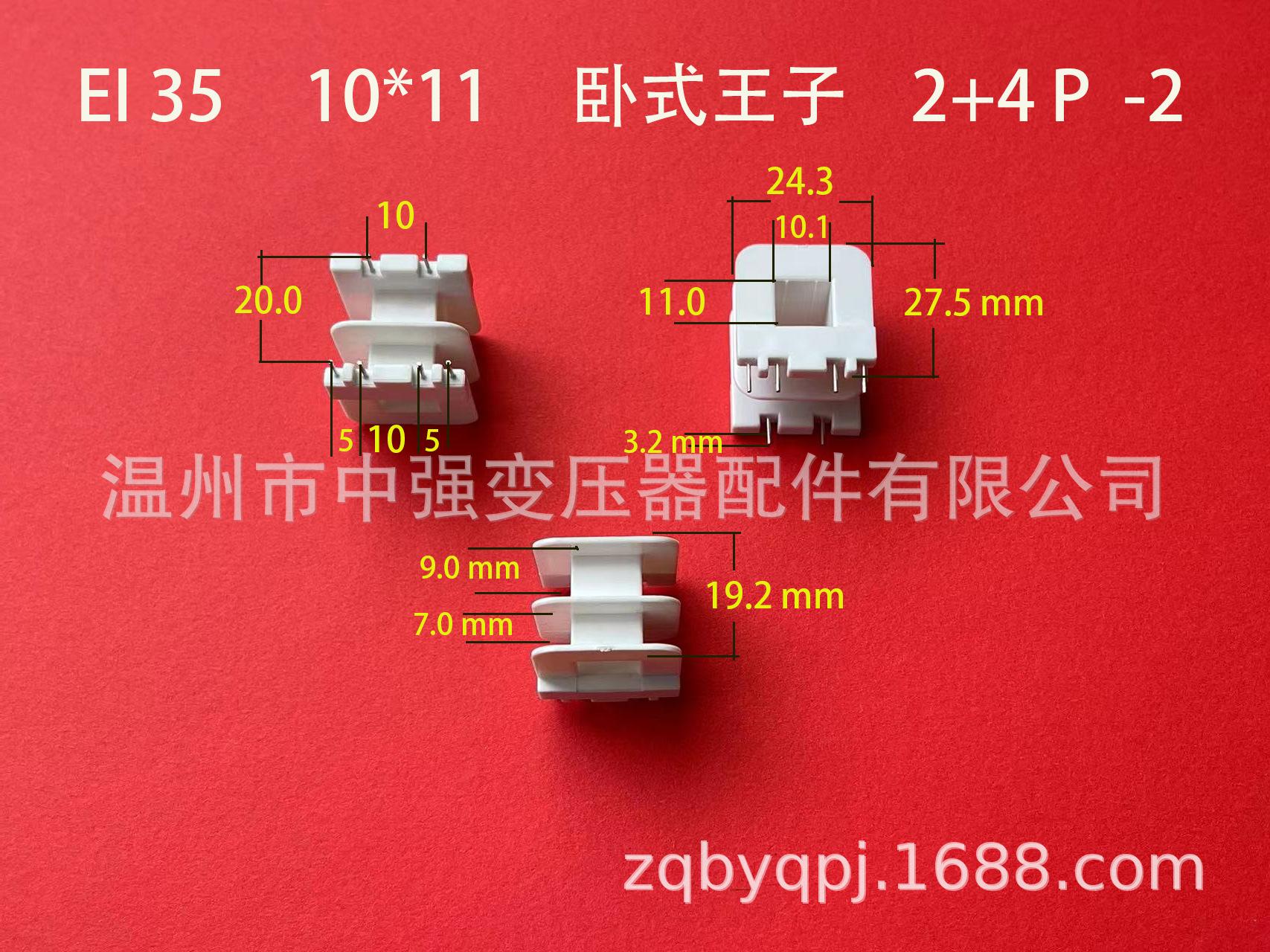 Suministro directo de fábrica de baja frecuencia EI 35 10*11 horizontal Wang zi 2+4-2 pines bobina esqueleto enchufe caliente núcleo de goma