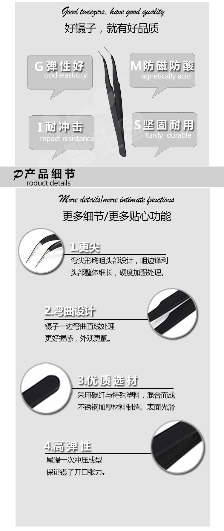 Pinzas negras de acero inoxidable, curvas, rectas, antiestáticas, para reparación de teléfonos móviles, herramientas para manicura.
