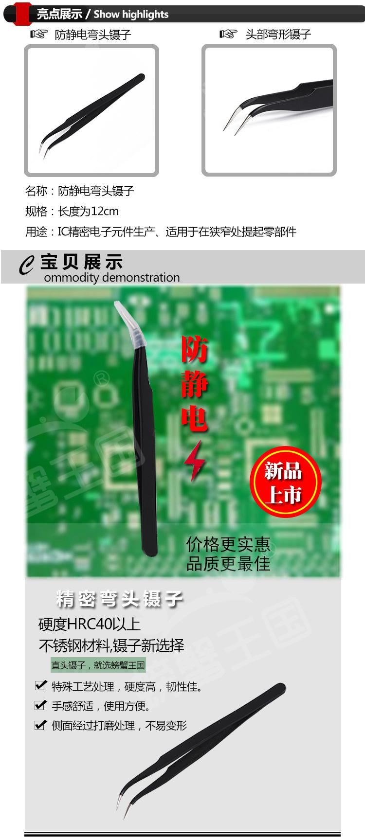 Anti-static elbow tweezers 1 piece, Straight Tweezers (Pack of 5), Elbow Tweezers (Pack of 5), Anti-static str...
