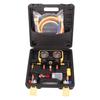 Juego de manómetros para refrigeración de aire acondicionado de automóvil con válvula de medición doble de refrigerante a prueba de aceite/explosiones y anticolisión más juego de medidor de flúor