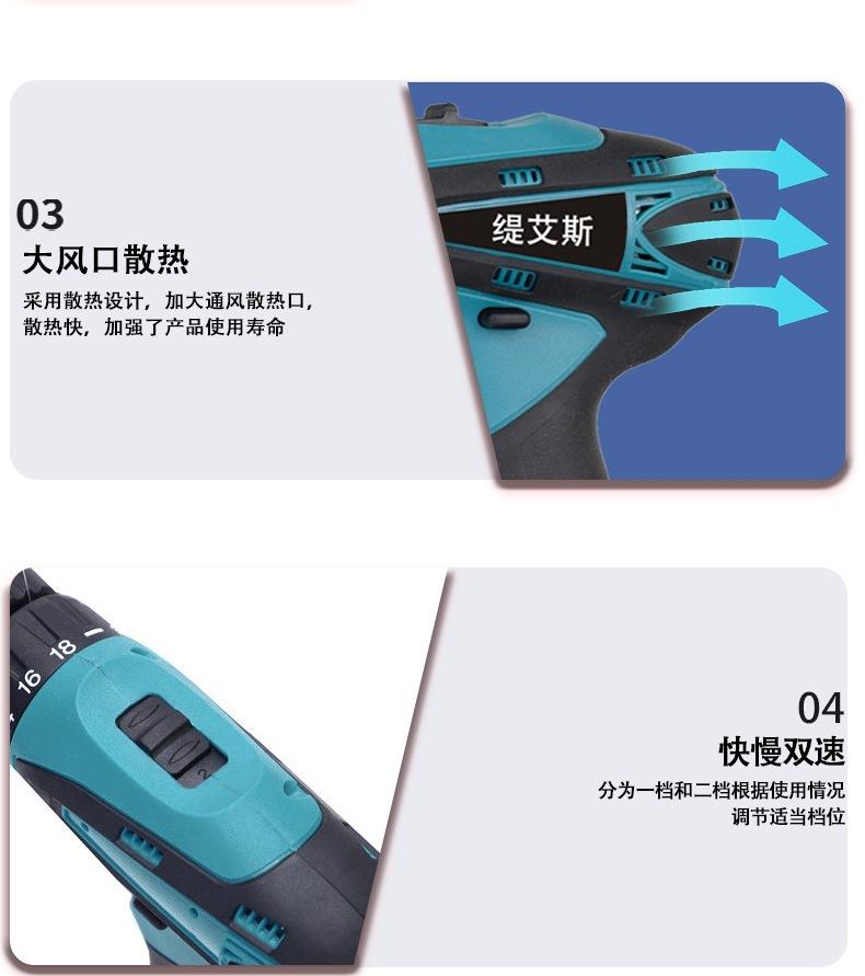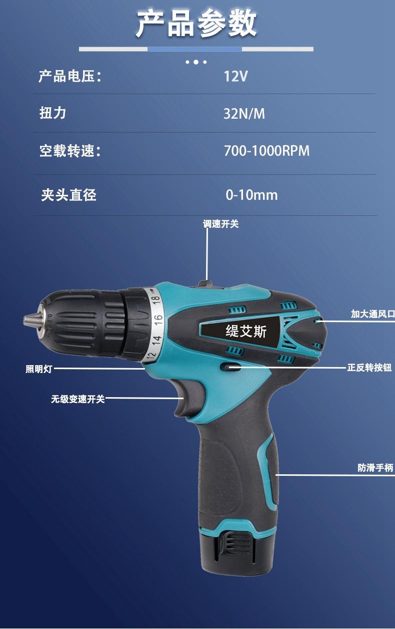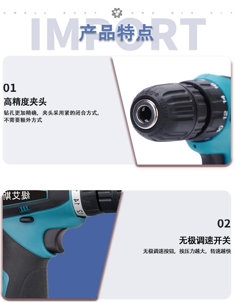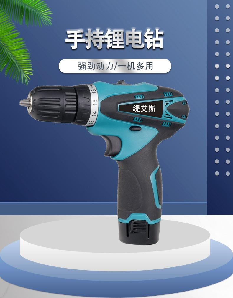 Taladro eléctrico de litio de mano multifuncional para el hogar, juego de herramientas de destornillador eléctrico, taladro eléctrico de litio de mano recargable al por mayor