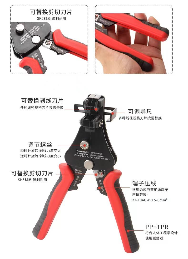 Six-in-one multifunctional wire stripper. 6/box 48/piece, 0.36kg