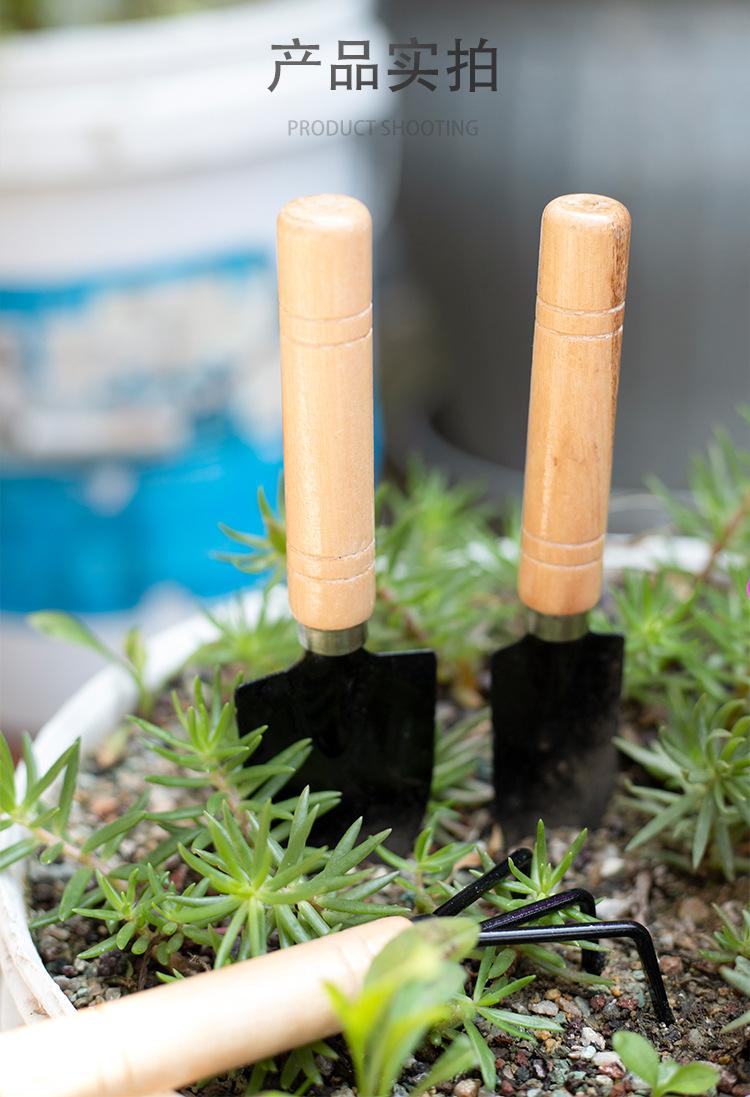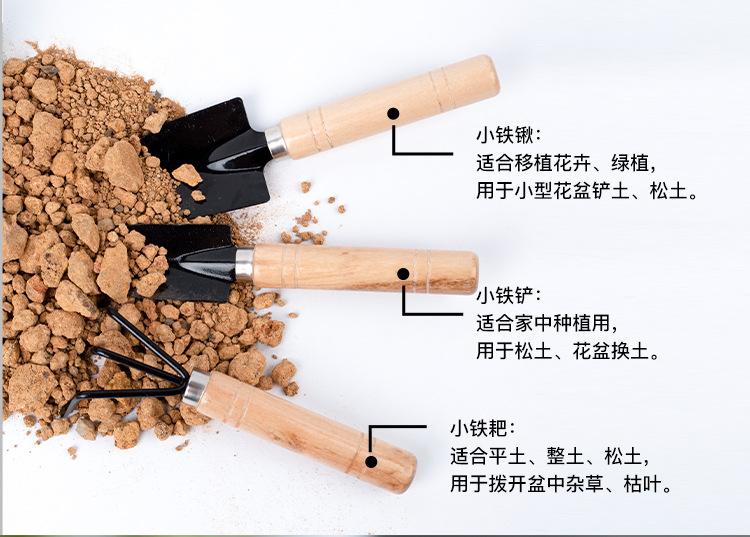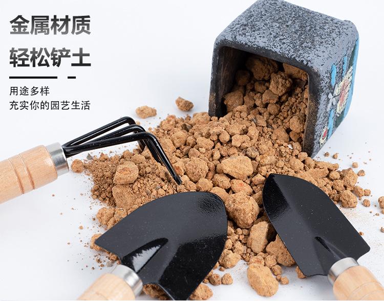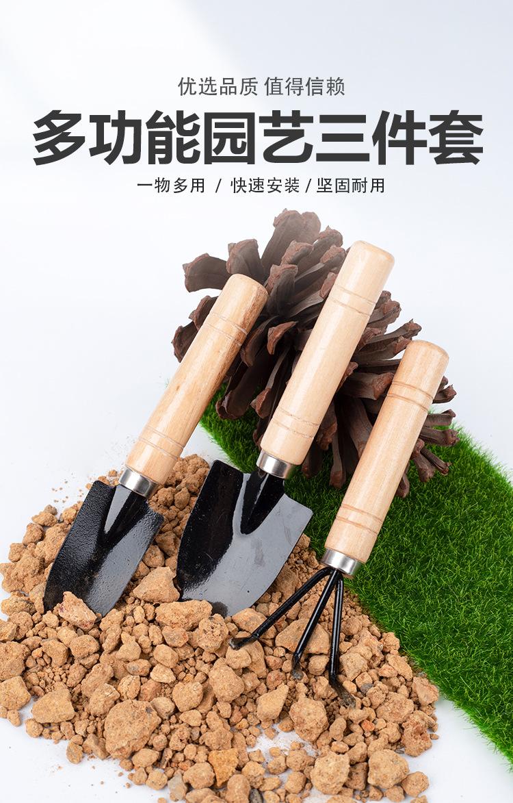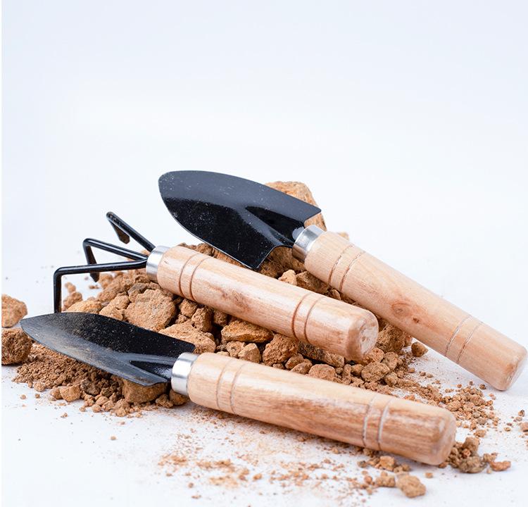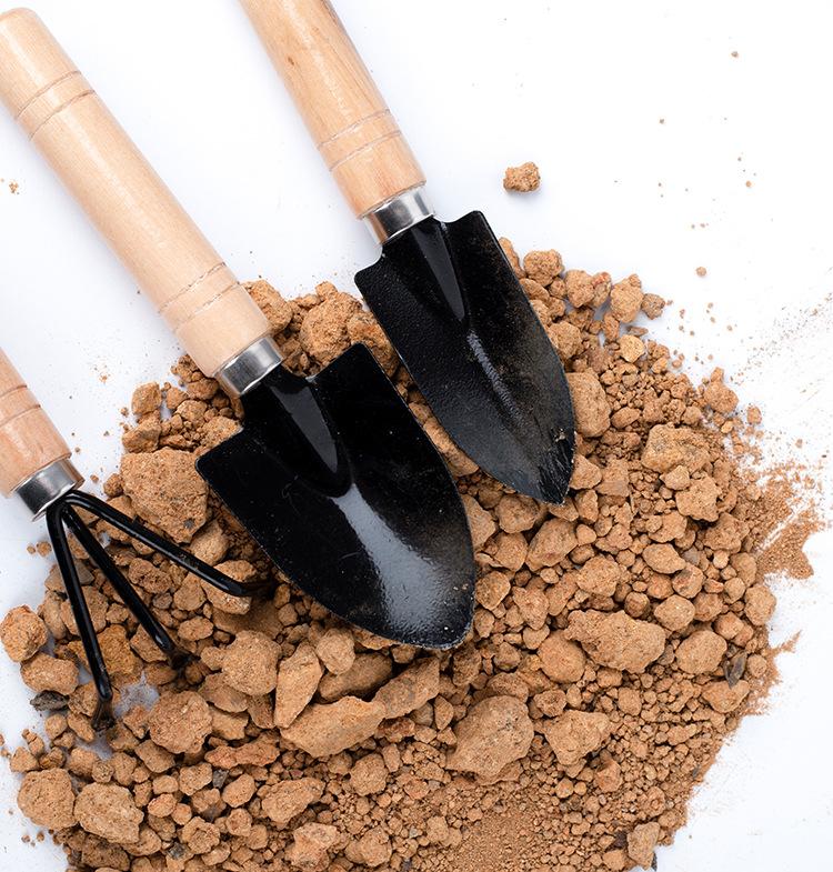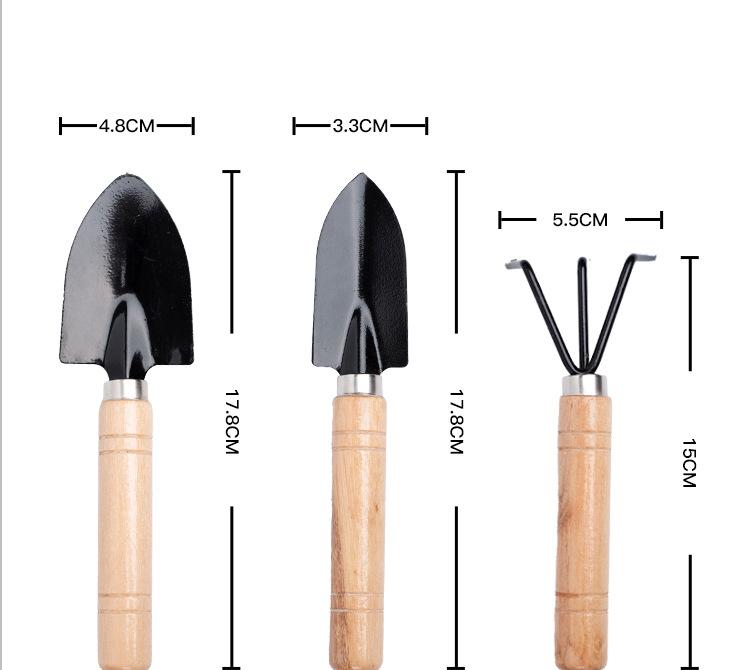 Pala pequeña de tres piezas para jardinería, pala para jardín, flores de interior, tierra de pino en maceta, herramientas para flores y vegetales.