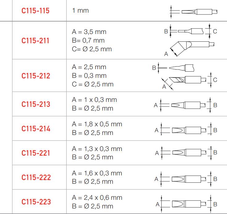 Cabezal de soldador JBC C115-211 de la serie C115 para la estación de soldadura nano NANE-2C.