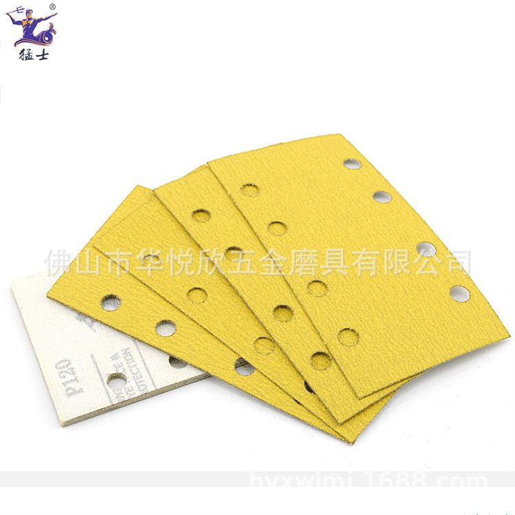 Características:El papel de lija seco de arena amarilla Mengshi está hecho de abrasivo de óxido de aluminio con excelente poder de lijado y durabilidad. En el procesamiento grueso, se utiliza resina adhesiva resistente a altas temperaturas y material base de alta resistencia para aprovechar al máximo la durabilidad de este producto. En el procesamiento fino, se utiliza material base suave y elástico para procesar una superficie más lisa. La superficie está recubierta con un revestimiento bloqueador para evitar la obstrucción del abrasivo y mejorar el rendimiento del producto.