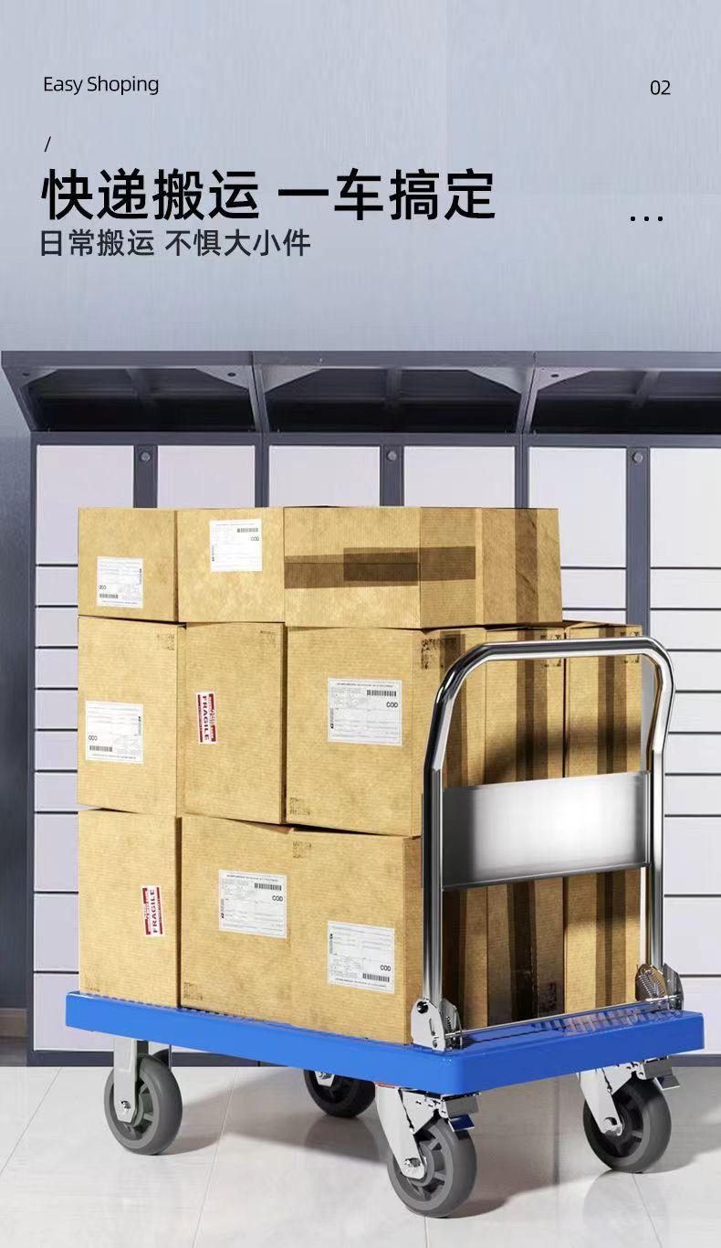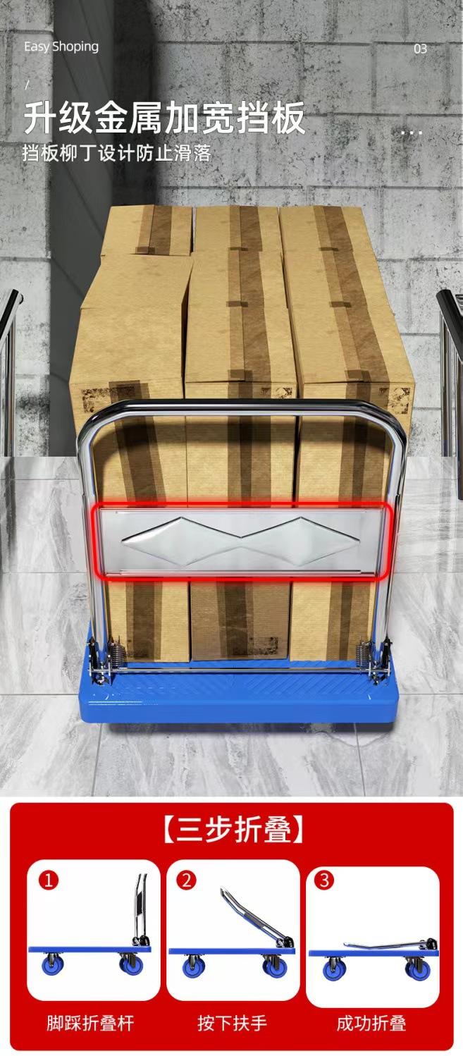 Carro plano, silencioso, plegable, con bandeja plana, portátil, para el hogar, de acero, con freno
