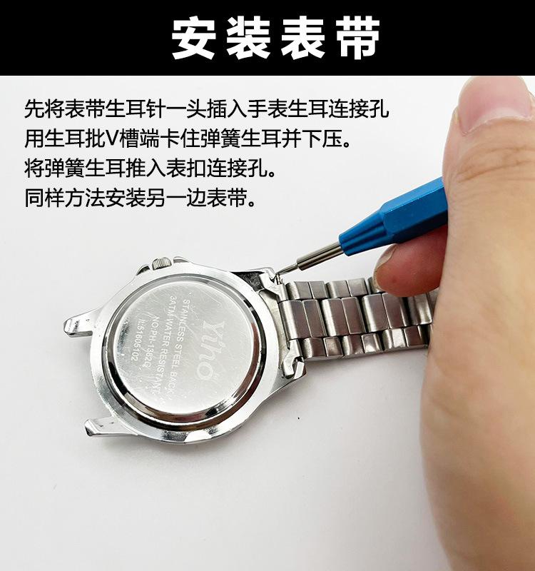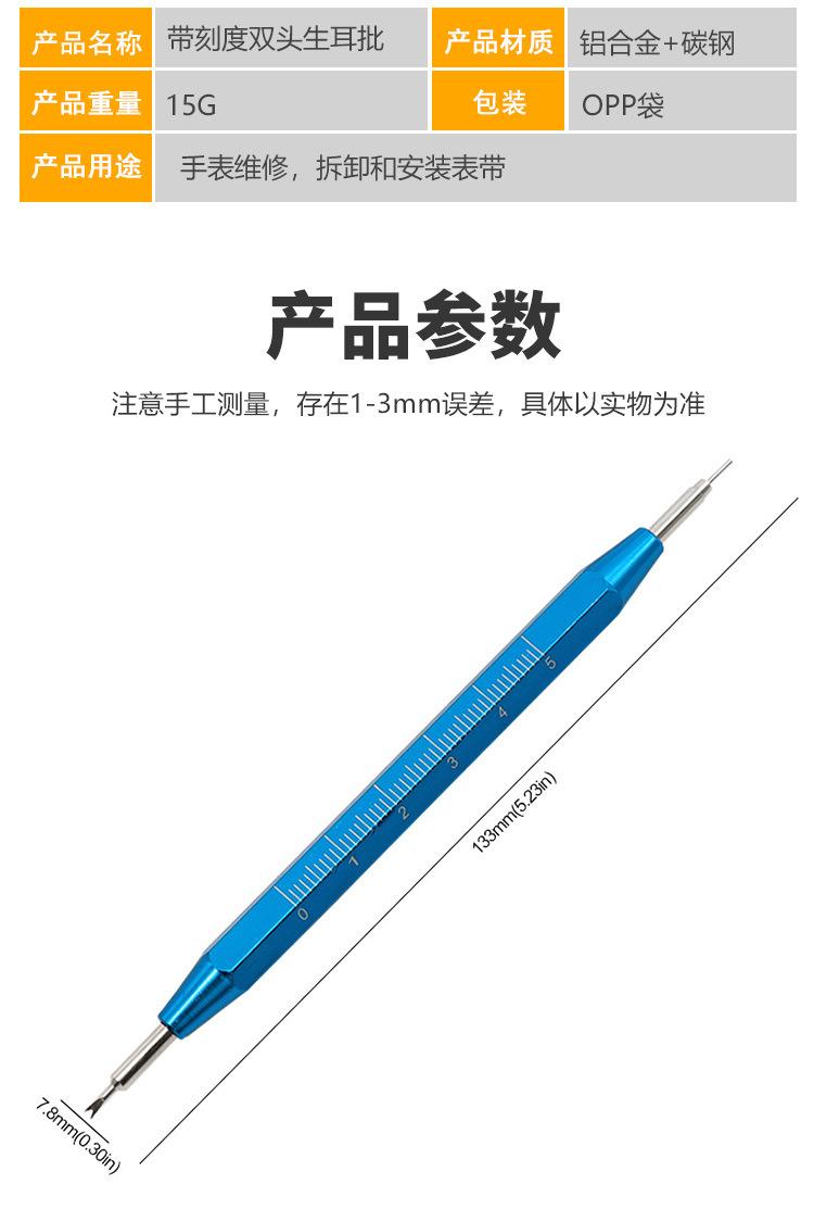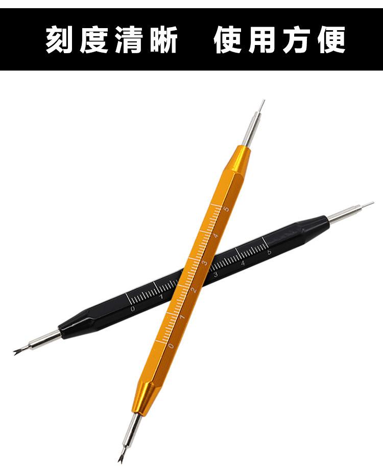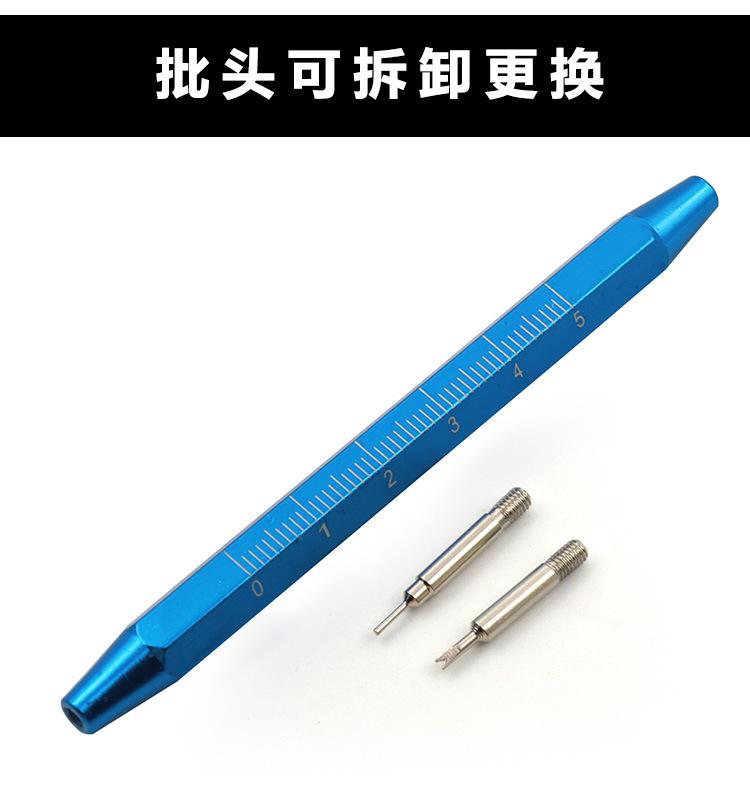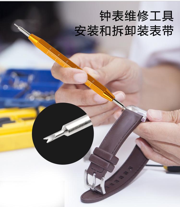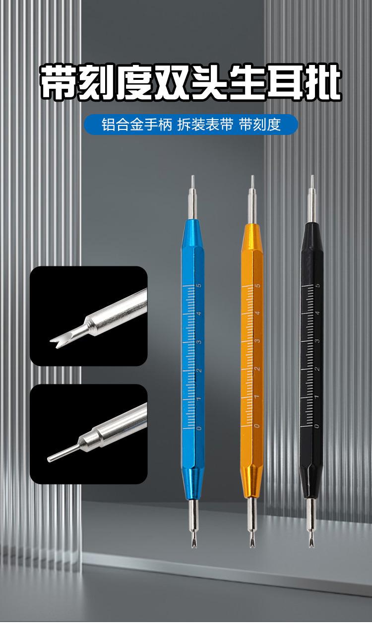 Lote de oreja cruda de doble cabeza mango de aleación de aluminio con escala herramienta de reparación de relojes correa de instalación y desmontaje