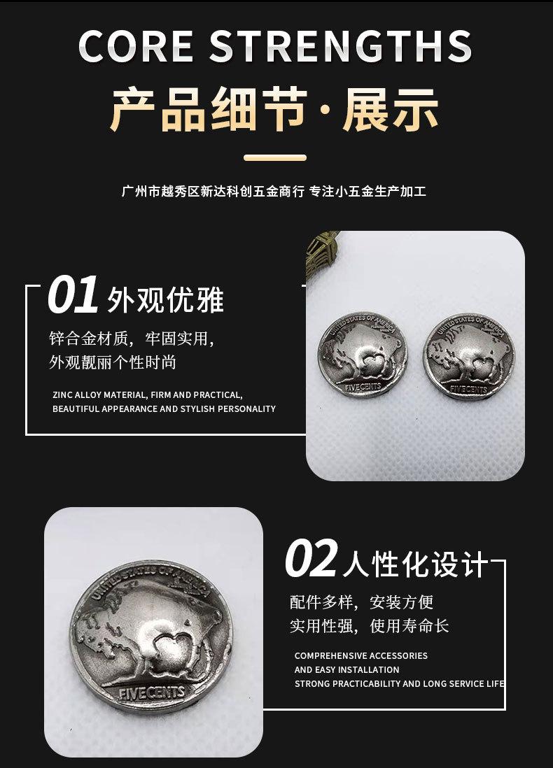 Fabricante Venta al por Mayor Zapatos Equipaje Accesorios DIY Aleación Redondo Cabeza de Toro Remache Hebilla Remache Retro Herrajes para Ropa Hebilla