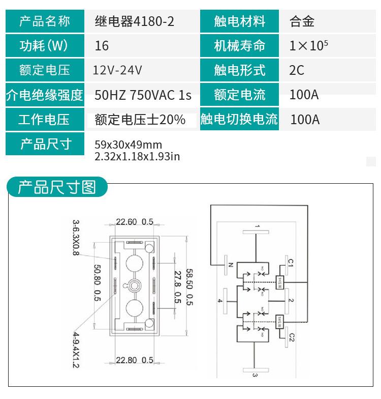 Relé para winch de fábrica de Ningbo 80A/100A siete pines 4180-2-12V relé automotriz