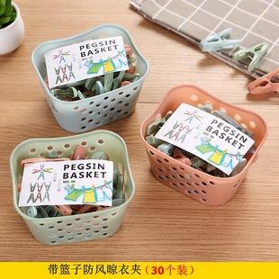30 pinzas de plástico para secar ropa con cesta de almacenamiento, resistentes al viento, para calcetines y ropa. |