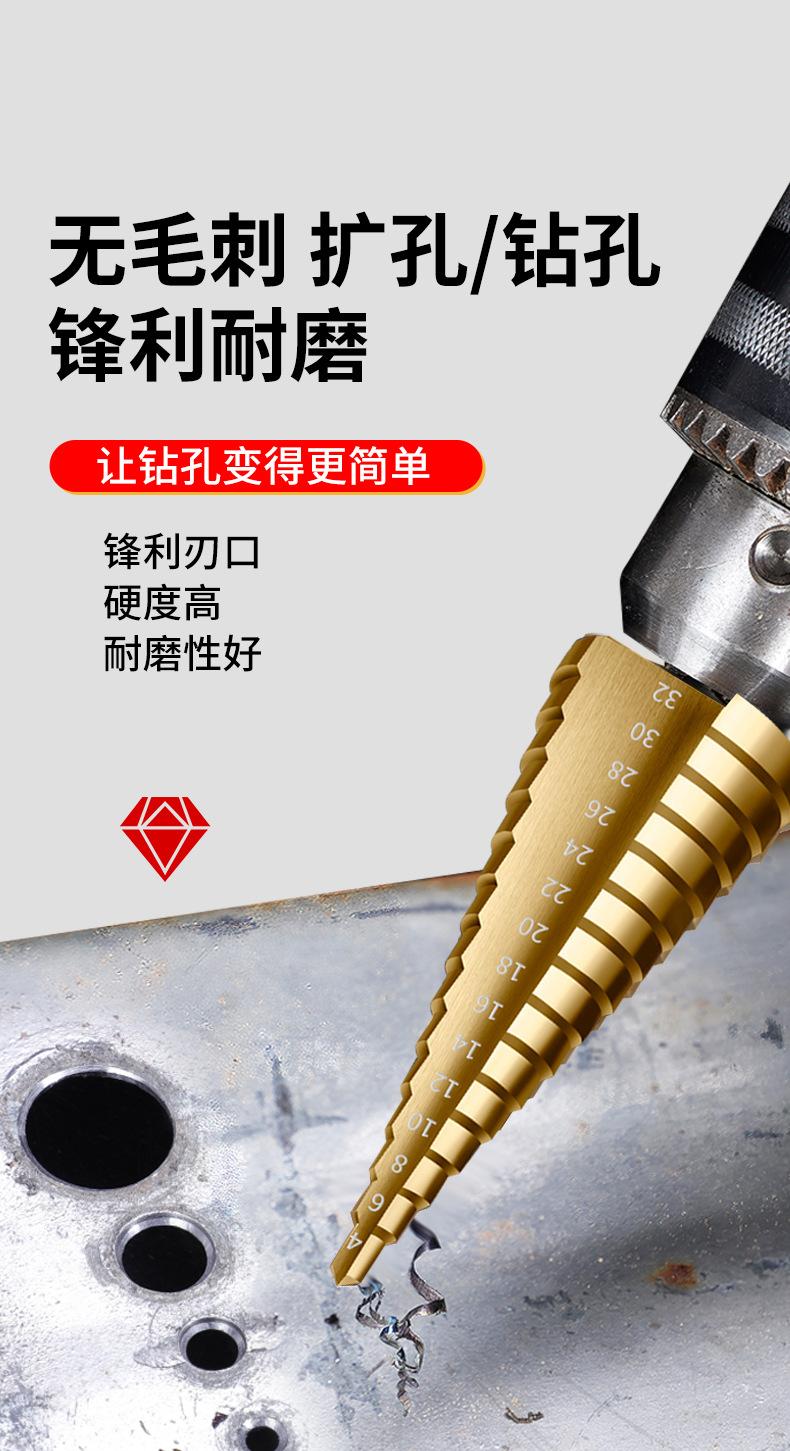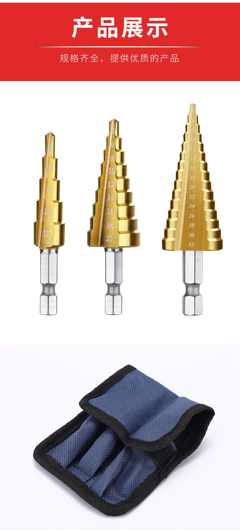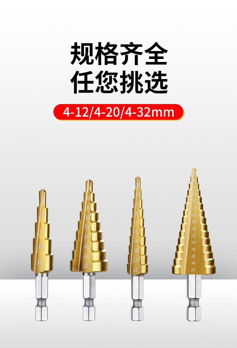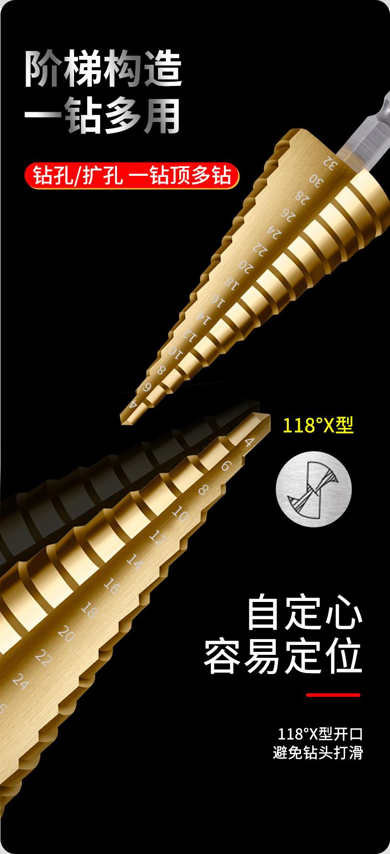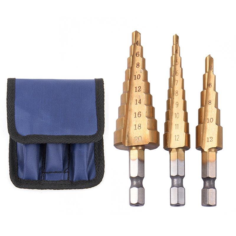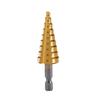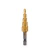 Nombre: Broca escalonada de acero rápido con ranura recta chapada en titanio métrica (vástago hexagonal)