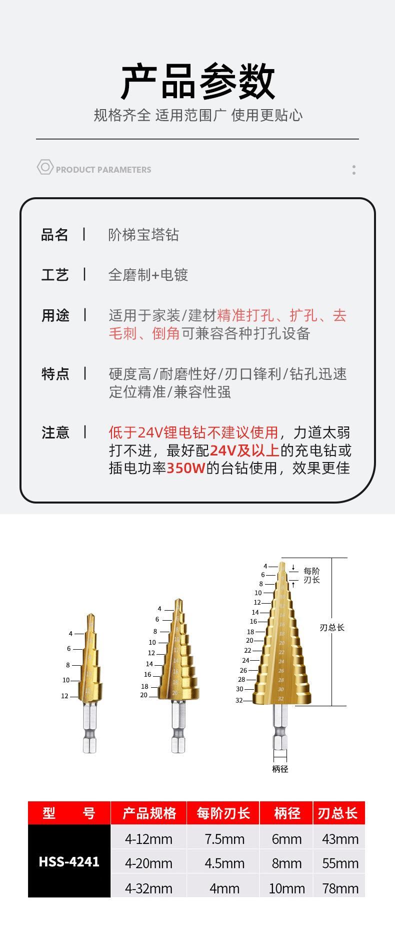 Material: Acero de alta velocidad 4241 (adecuado para piezas de trabajo con dureza inferior a 25, como láminas delgadas de hierro, placas aislantes y tableros de madera)