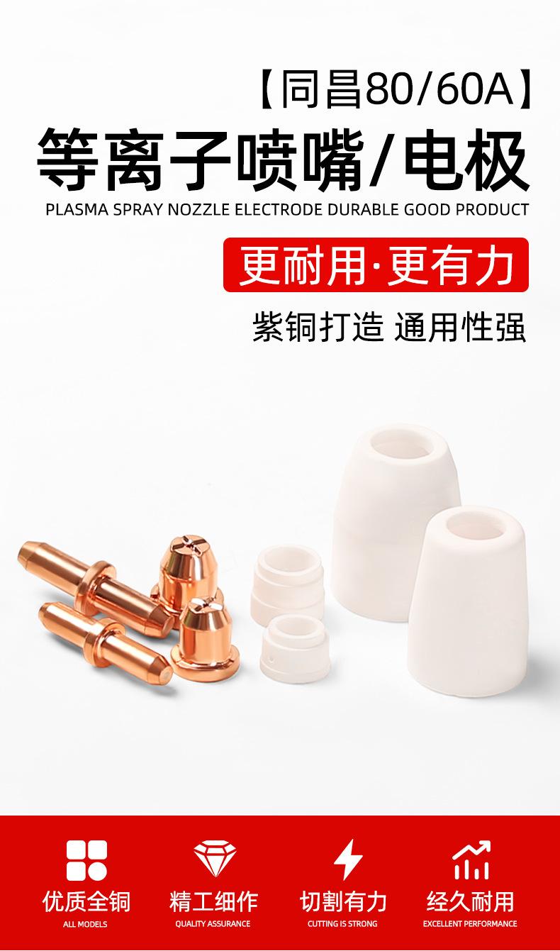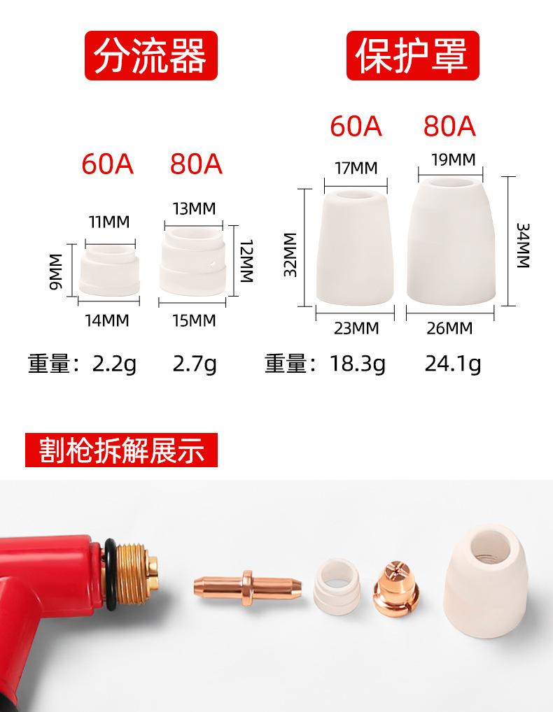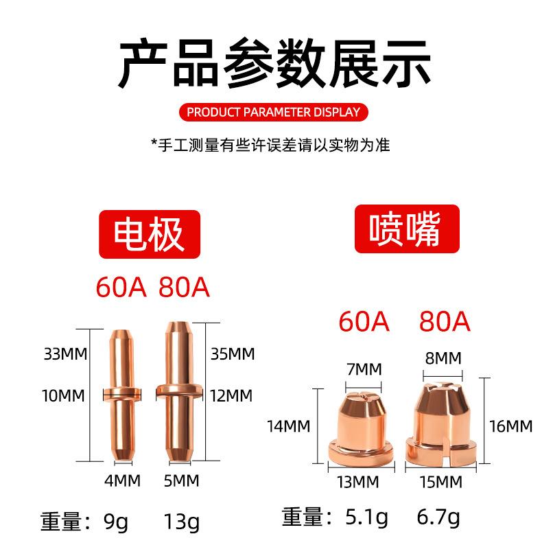 Boquilla de corte de electrodos Tongchang 80A, boquilla de 60 electrodos, accesorios para máquina de corte por plasma LGK-63, cabezal de pistola con boquilla de corte TC100