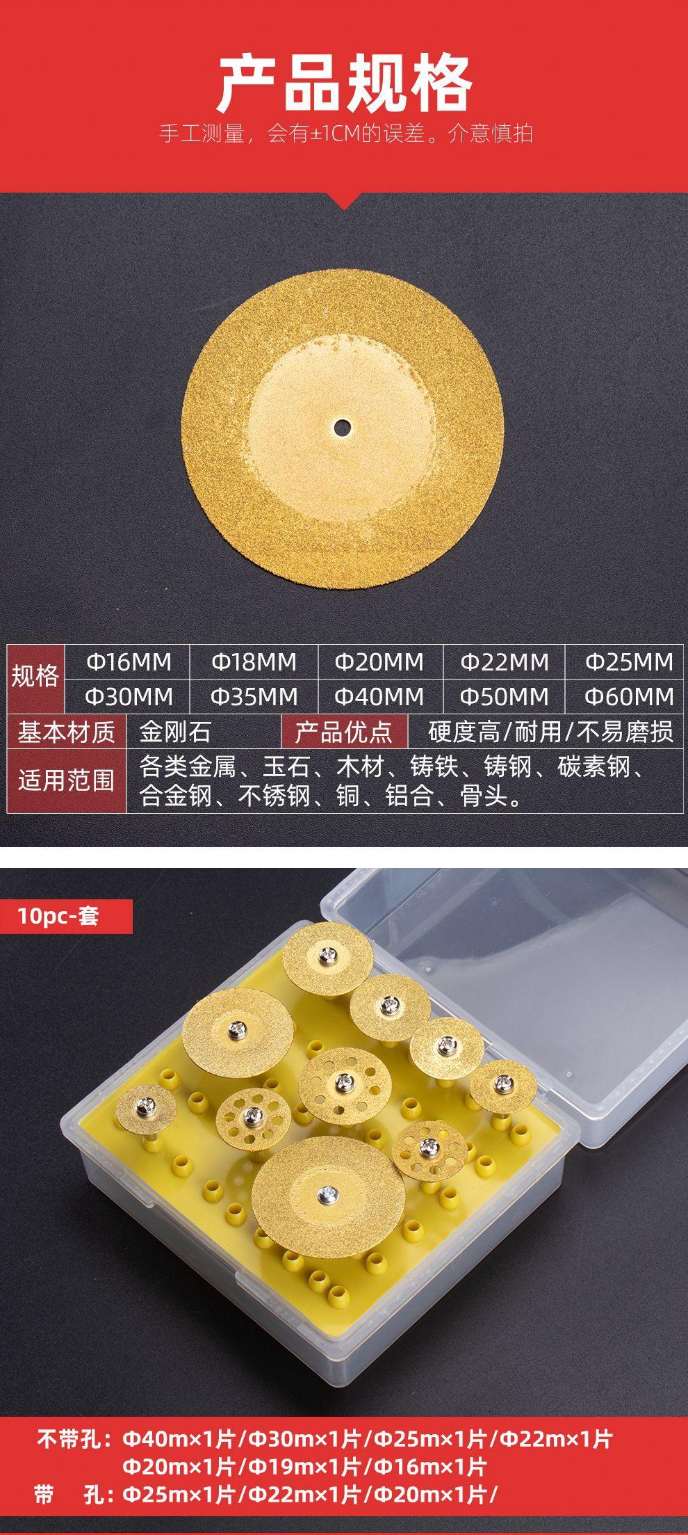 Disco de corte dorado, 10 piezas por paquete, ¡compre un paquete y llévese una biela de 3 mm de regalo!