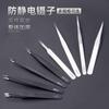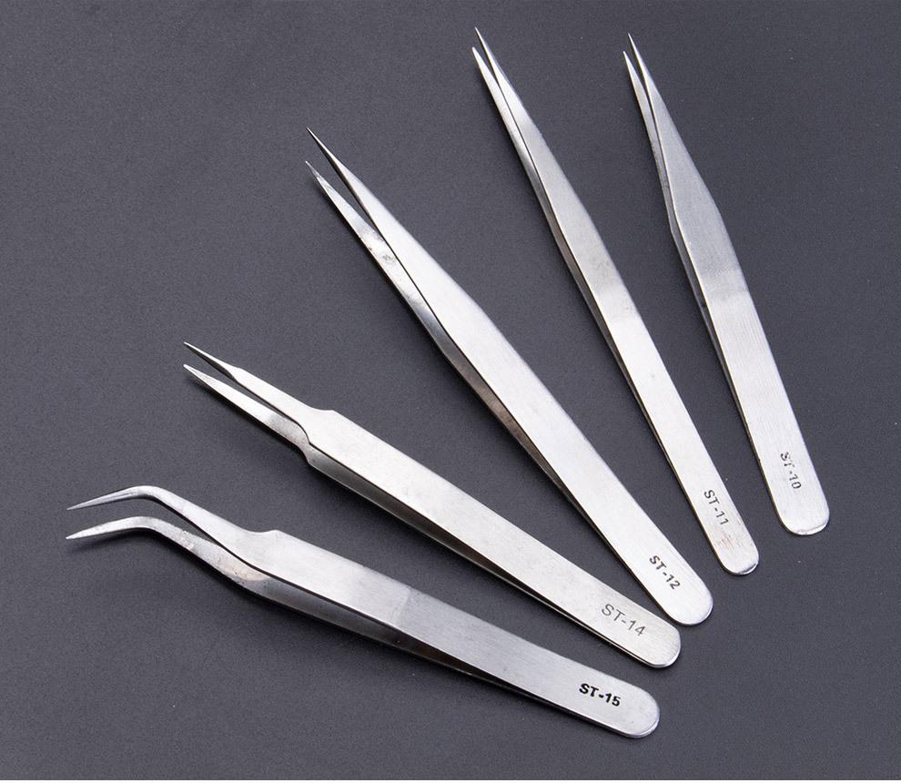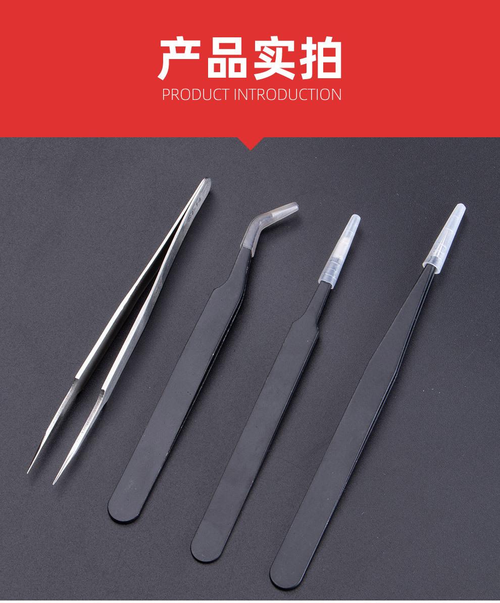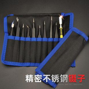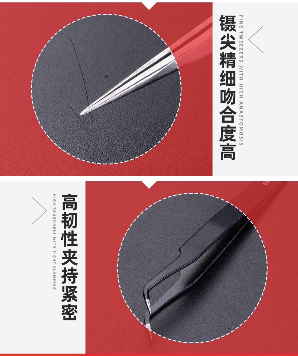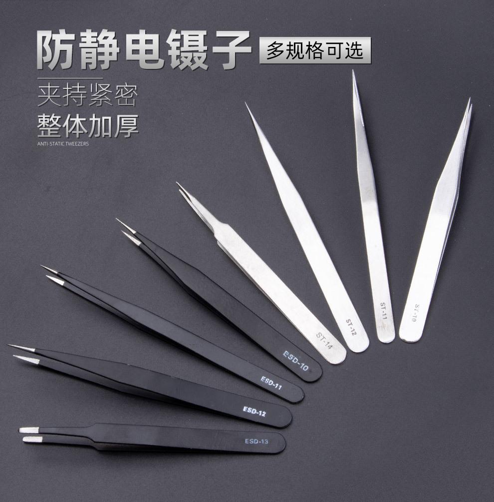Pinzas de acero inoxidable, pinzas electrónicas engrosadas, codo puntiagudo, boca plana, herramienta de sujeción