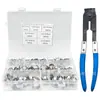 Abrazadera de tubo de una sola oreja de acero inoxidable en caja de 130 piezas transfronterizas, abrazadera de manguera de aro, aro de garganta americano con alicates de aro
