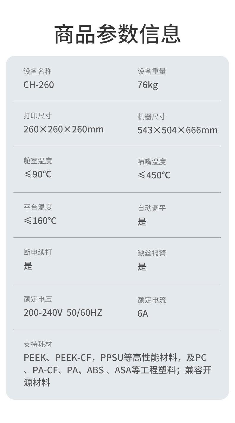Impresora 3D Creative 3D CH-260 de grado industrial, alta temperatura, alto rendimiento, materiales de ingeniería de alta precisión dedicados