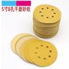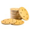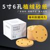 Papel de lija flocado al por mayor, masilla para coche, pulido de cenizas, papel de lija en seco de 5 pulgadas y 6 agujeros, disco adhesivo, papel de lija amarillo autoadhesivo