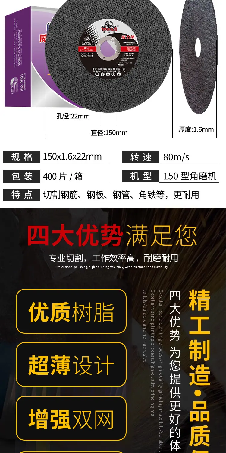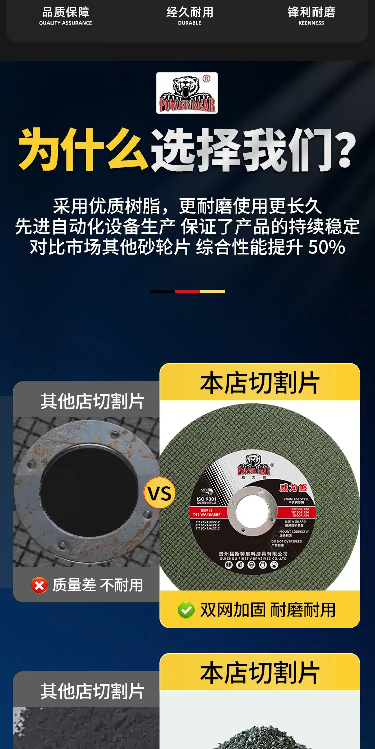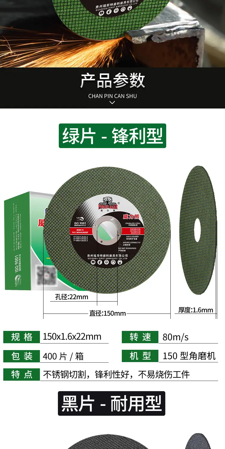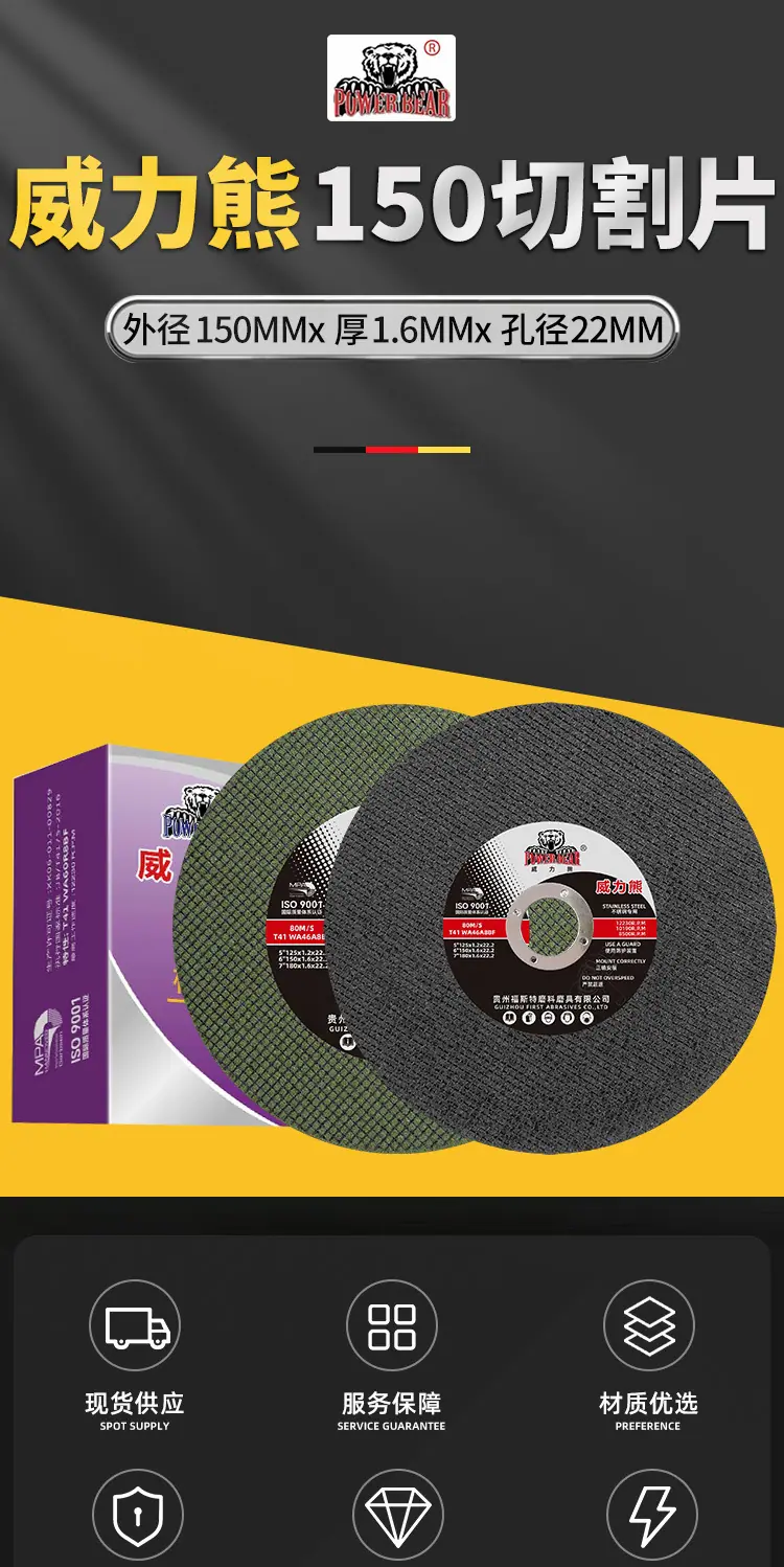Disco de Corte Ultrafino Power Bear 150 para Metal y Acero Inoxidable, Disco de Corte Especial para Amoladora Angular, Muela Abrasiva de Resina