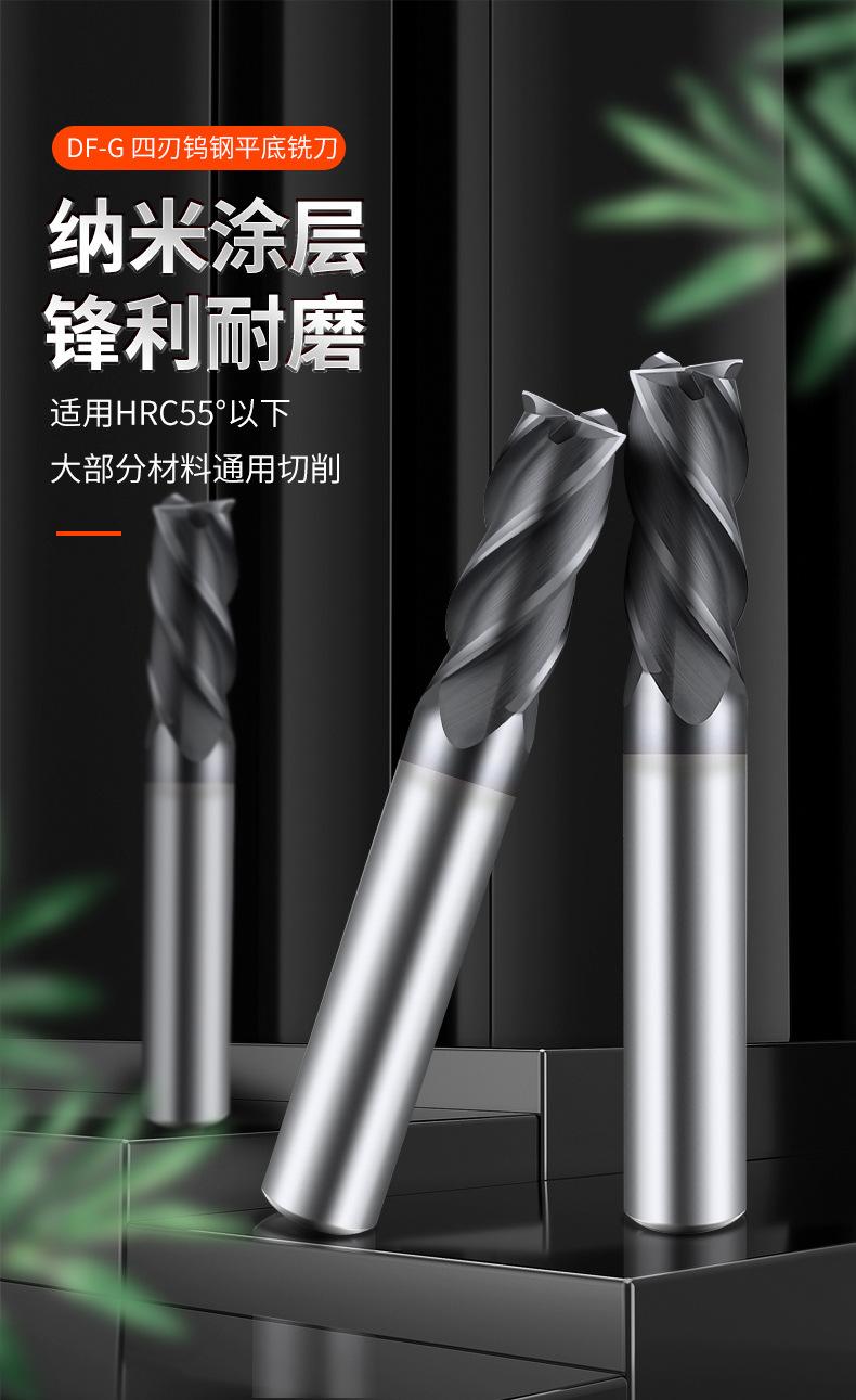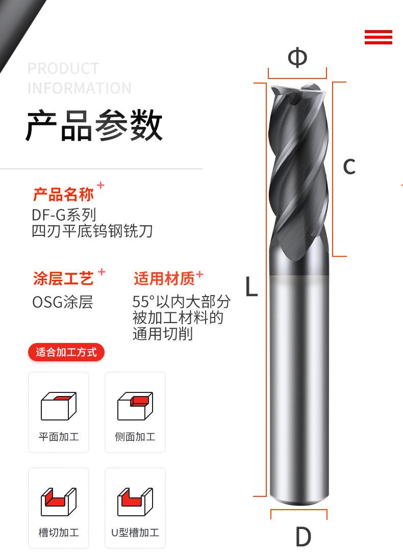Fresa de acero de tungsteno DF-G, fresa de cuatro hojas de alta dureza, fresa de carburo recubierta, fresa CNC de 4 hojas
