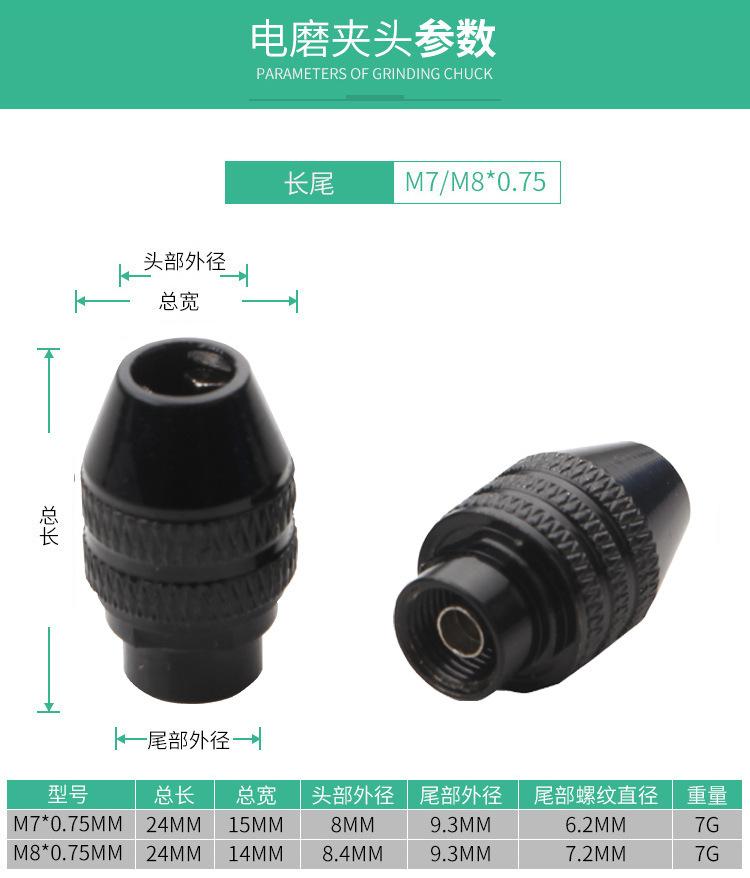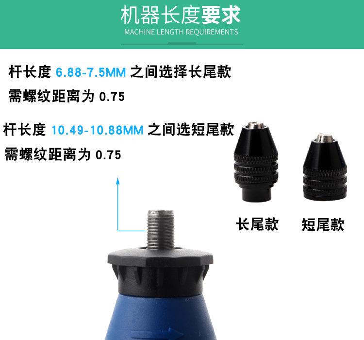 Este mandril se puede usar con amoladoras eléctricas pequeñas y ejes flexibles pequeños, como la Delta pequeña, la de mango recto azul y la de cabezal de aluminio pequeño, disponibles en nuestra tienda. (Es posible que el mismo modelo disponible en el mercado no sea compatible con el eje flexible, así que preste atención al comprarlo).