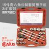 Talent GENIUS herramientas importadas juego de llaves de vaso hexagonales métricas de 15 piezas Serie 3/4 EU-615M