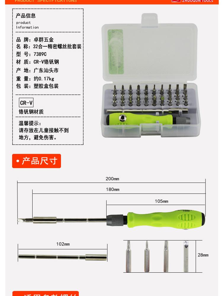 Destornillador multifunción 32 en 1, adecuado para la reparación de teléfonos móviles, productos electrónicos digitales, 7389