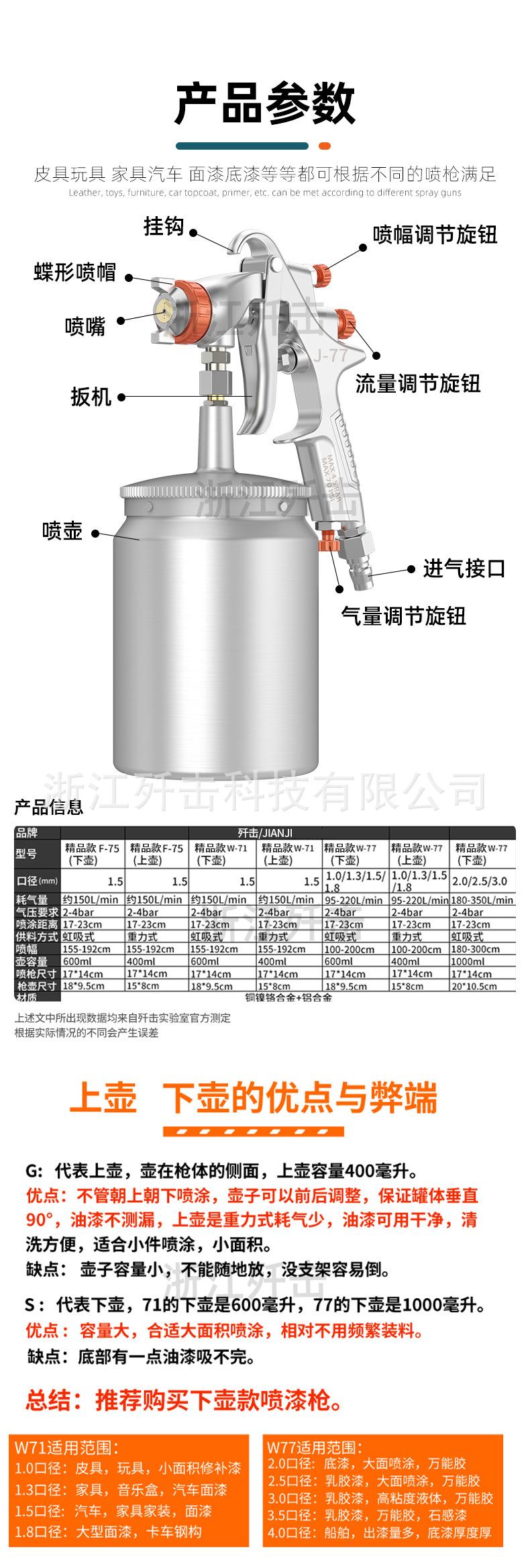 Pistola pulverizadora neumática de alta atomización w77w71 para ollas superiores e inferiores, pintura para muebles de automóvil, decoración del hogar, directa de fábrica