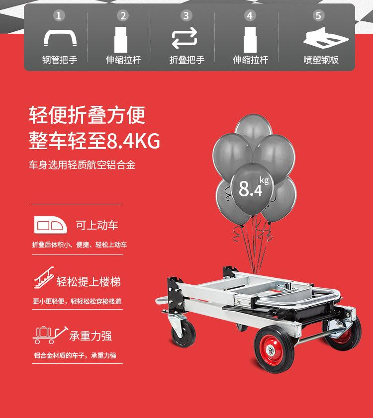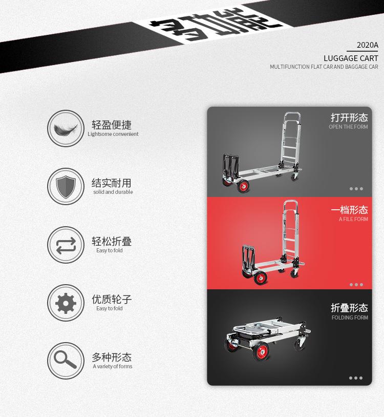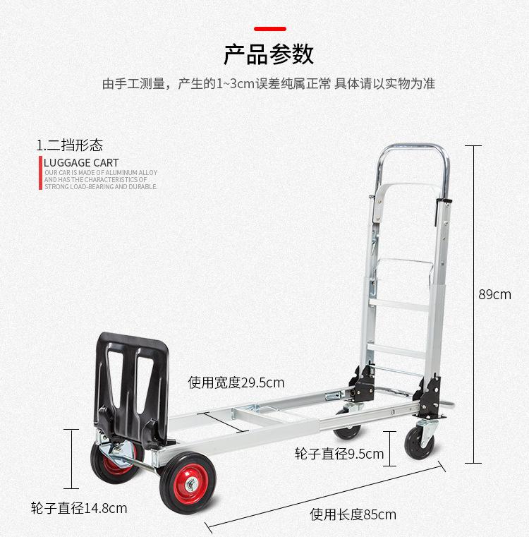 Carretilla de Logística Carretilla Portátil Plegable Carretilla Telescópica Camión de Plataforma Multifuncional de Aleación de Aluminio Camión de Transporte