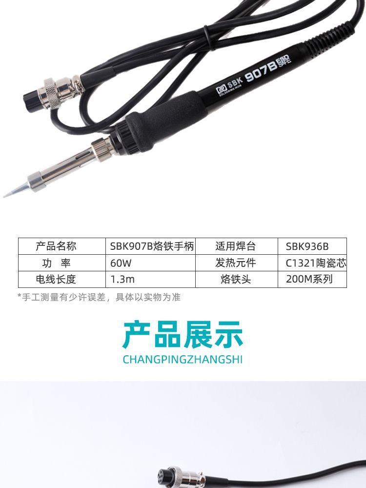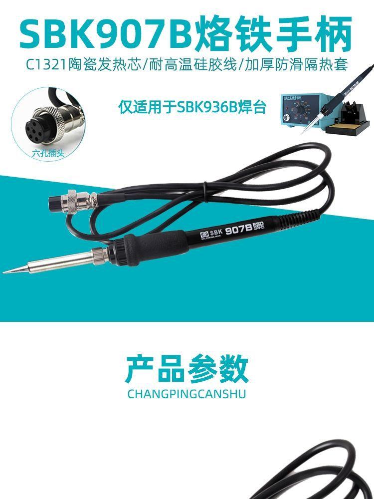 Mango de cautín eléctrico de luz blanca SBK907B 936b accesorios para estación de soldadura de temperatura constante cautín de seis orificios 65W núcleo cerámico enchufable