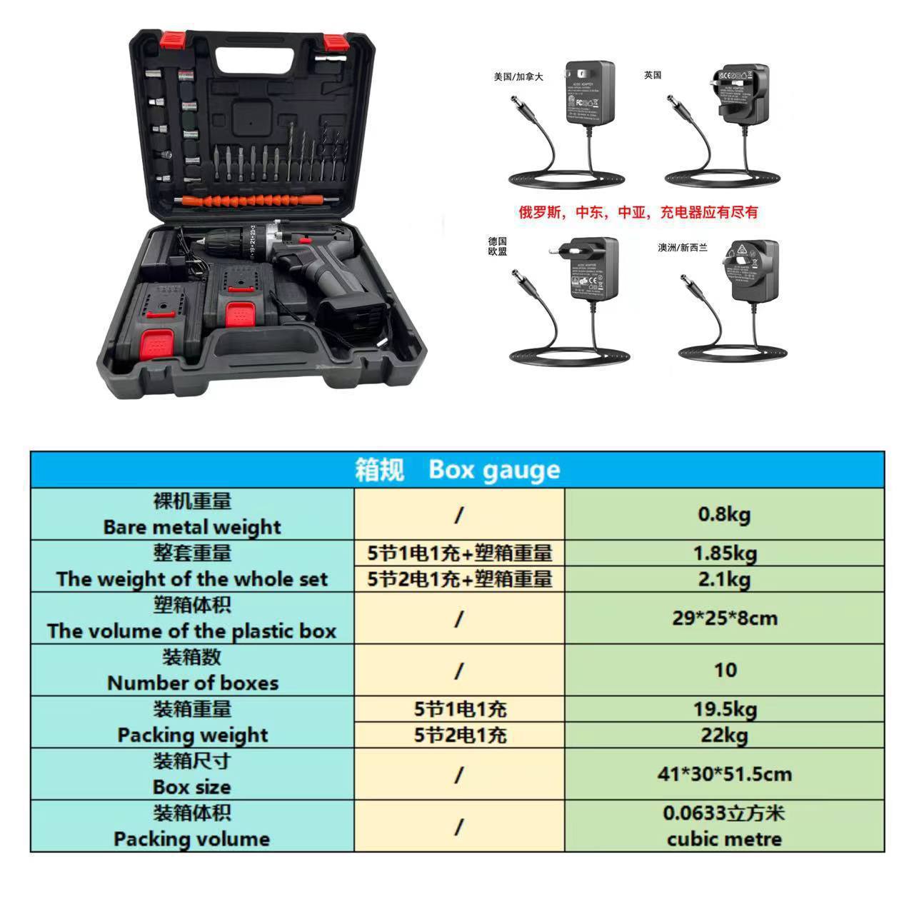 Taladro eléctrico de mano recargable tipo pistola taladro eléctrico de mano de doble uso atornillador eléctrico de impacto herramientas eléctricas transfronterizas de comercio exterior