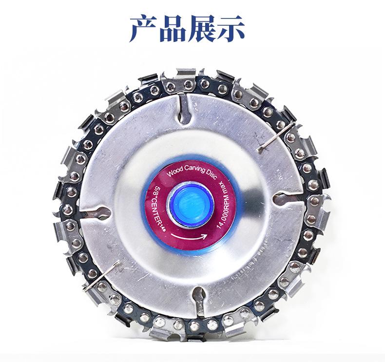 Raspador de seis dientes + disco de púas curvo de 85 mm + cuchillo de recorte de 65 mm + disco de cadena de 4 pulgadas y 22 dientes + cadena de repuesto de 22 dientes