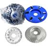 Raspador de seis dientes + disco de púas curvo de 85 mm + cuchillo de recorte de 65 mm + disco de cadena de 4 pulgadas y 22 dientes