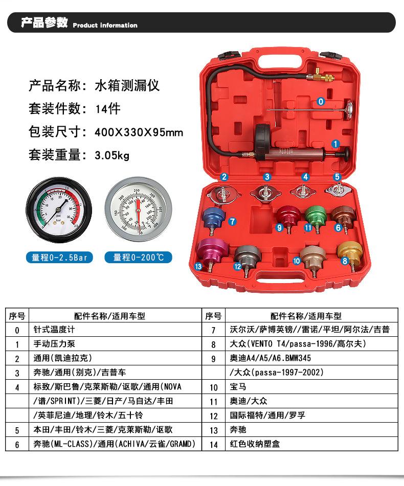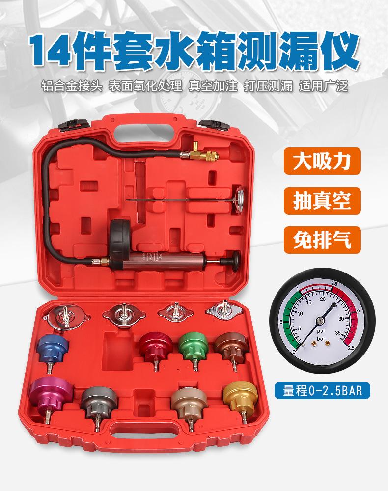 Detector de fugas de tanque de agua de 14 piezas probador del sistema de refrigeración del coche manómetro de presión para reparación de automóviles manómetro inflador